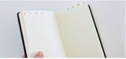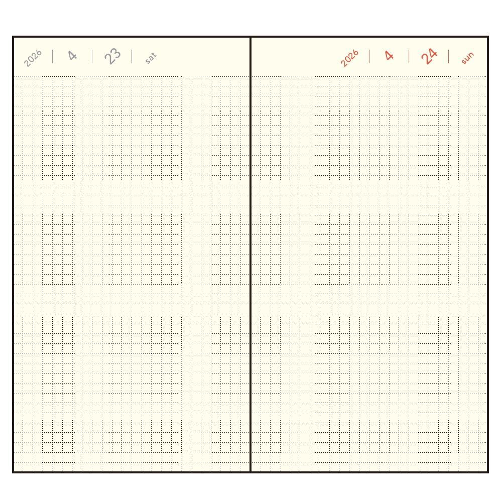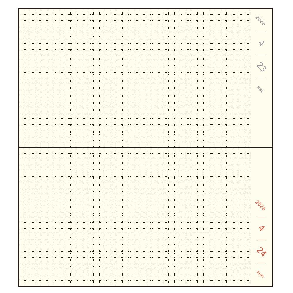 日付と2.5mm方眼のみのシンプルなレイアウト。日付がななめに入っているので、タテヨコどちらでもつかえます。毎日のtodoやログなどを簡単に記入できるレイアウトです。