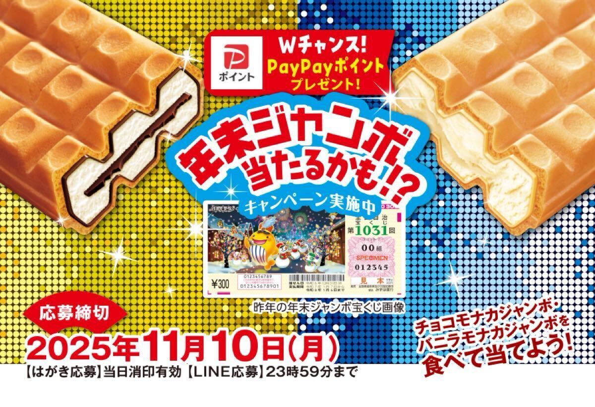 懸賞 西銀座チャンスセンター 年末ジャンボ 当たるかも 連番10枚セット 森永製菓 チョコモナカジャンボ バニラモナカジャンボ 宝くじ