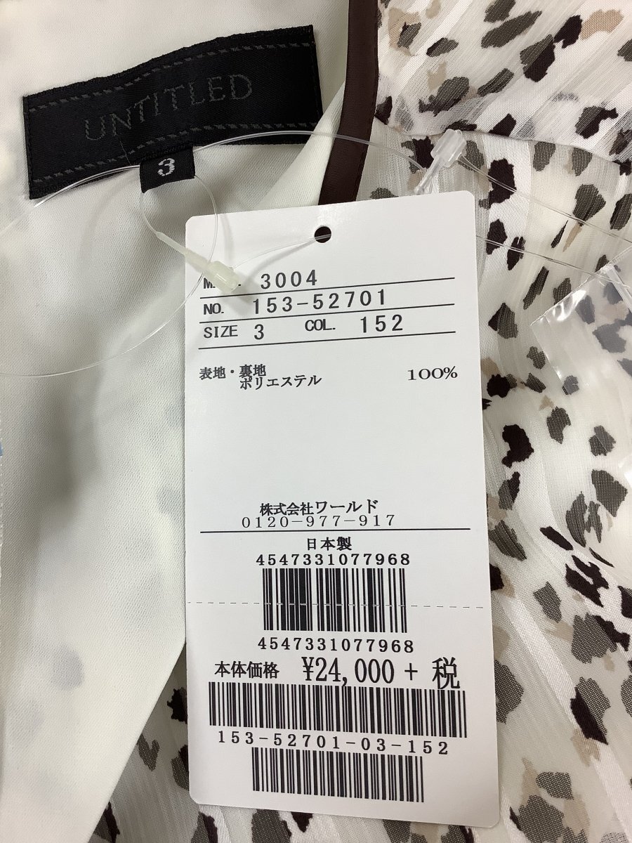 アンタイトル (UNTITLED) 定価24000円 タグ付き未使用 白に茶系柄 シアーストライプワンピース 【表示サイズ】 3 【平置き実寸】 脇下身幅 46cmほど 丈 97cmほど ゆき丈 25cmほど 【季節感】夏向け 【状態その他】 未使用 ・ポケットはありません ・肩パット無し 当店管理番号:10^141084 |