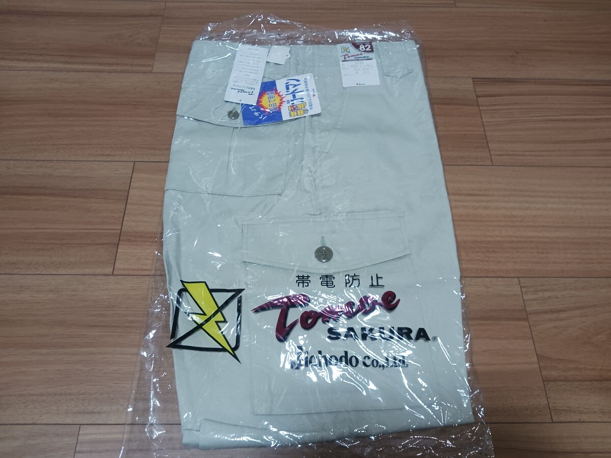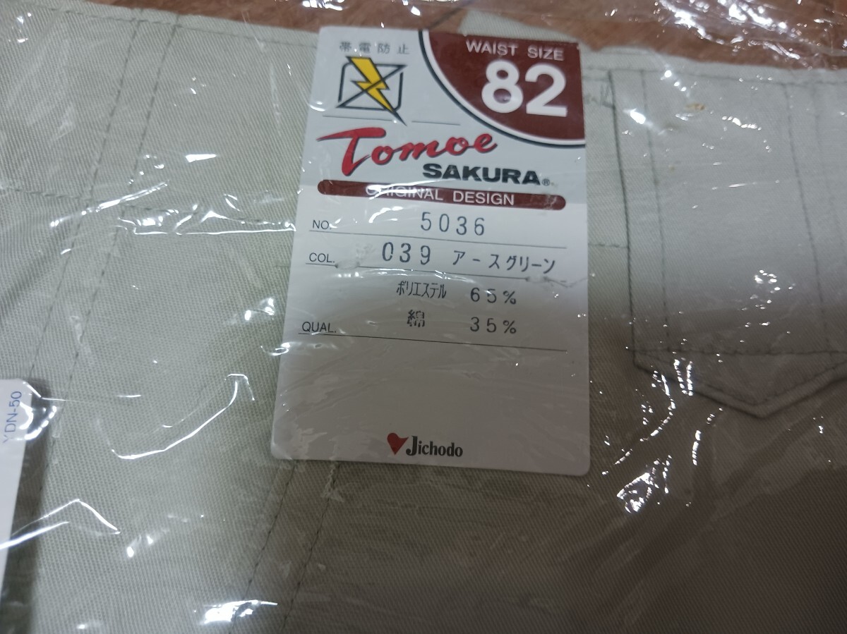 5194 自重堂 5036|エコ製品制電カーゴパンツ|アースグリーン|W82㎝|春夏|Tomoe SAKURA|新品未使用|帯電防止|綿ポリ混紡|作業ズボン|制電
