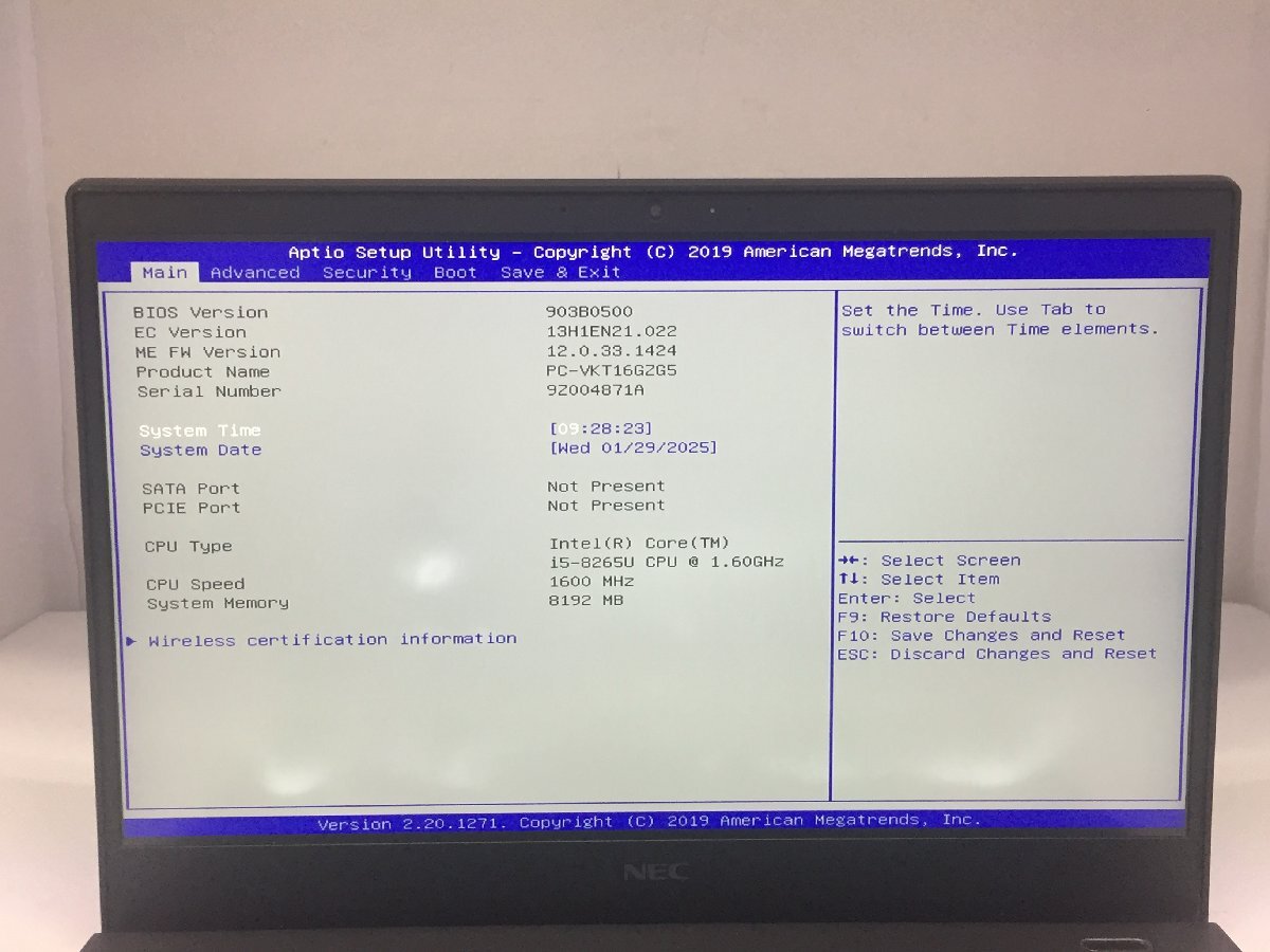ジャンク/ NEC PC-VKT16GZG5 Intel Core i5-8265U メモリ8.19GB ストレージ無し 【K07601】