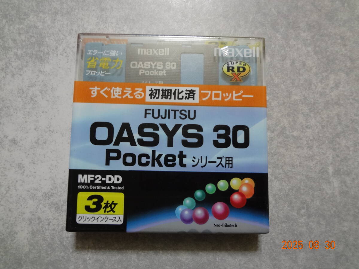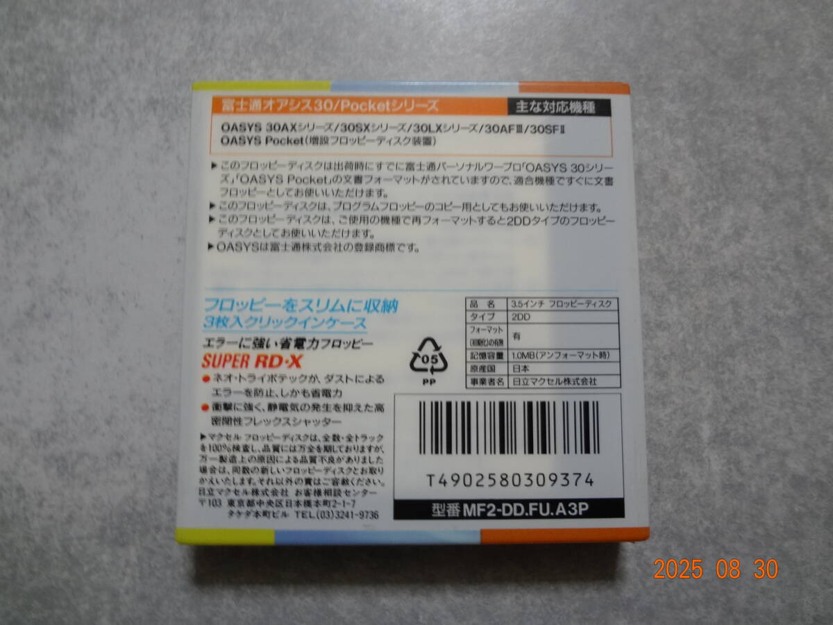 マクセル 富士通 オアシス OASYS30 OASYS Pocket用 フロッピーディスク MF2-DD 未使用3枚 です。