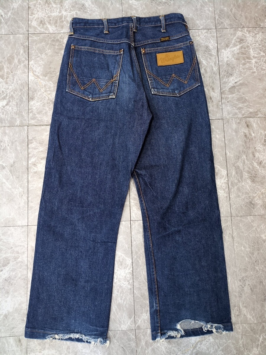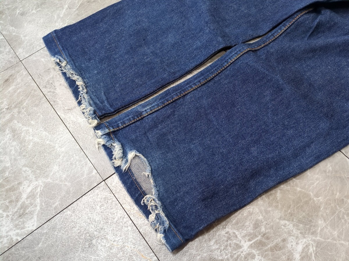 | メンズ31。色はインディゴ 裾にダメージ 臀部ステッチ抜け |