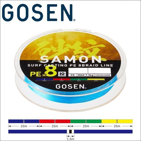 ゴーセン 砂紋 PE×8 (0.4号 250m巻き) 4色分け サモン x8ブレイド 投げ用 日本製 国産 8本組PEライン