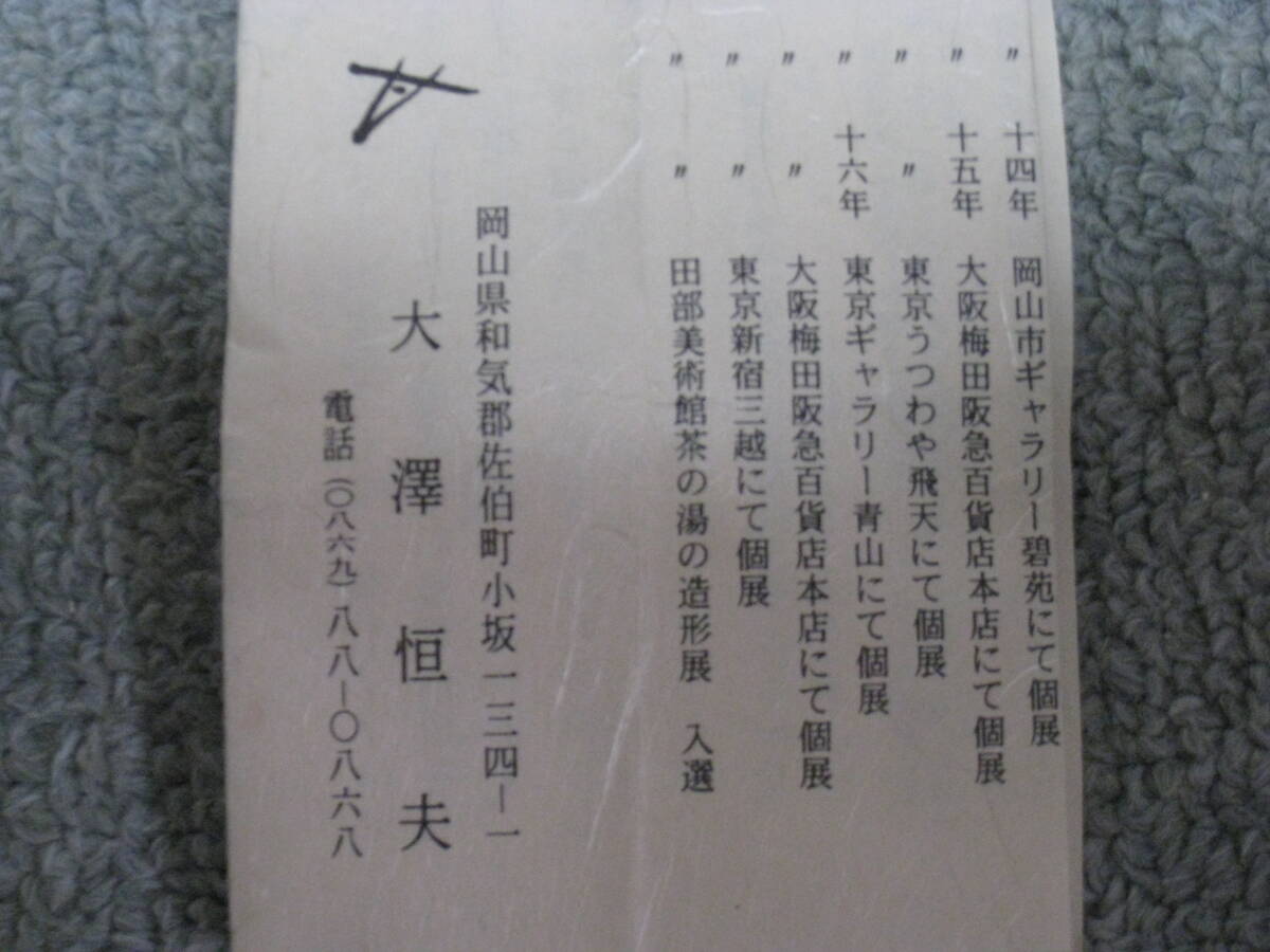 | 商品説明 | ※ 必ず、最後まで、お読みください。 最近いたずら入札が多いため落札後24時間以内の連絡、 48時間以内に入金のない場合、落札者を削除致します。 商品到着後、 評価頂いてからの評価となります。 備前焼 松田崋山 作 窯変 花入 桐箱付 一品物 希少 です。 桐箱 高さ27cm 横12.5cm 奥行12.5cm です。 定価 41000円です。 ★写真に写っているものが、全てです。 状態】 ・使用・保管による傷や汚れがあります。 【備考】 ※希望価格に到達しない場合、出品取り消しをする事もございます。 ご了承下さい。 ※まとめて出品している商品に関して、個別で対応出来ない事 があります、ご了承下さい ※写真にあるものがすべてとなりますのでご確認ください ※その他、写真にてご確認ください ■□特記事項□■ ● わかる範囲でご質問には答えたいと思いますが、すぐに対応 できないこともございますので予めご了承ください。 尚、専門家ではないため専門的な知識はございませんので、 ご質問によっては返答できない場合がございます。ご容赦ください。 写真にてわかる方に使っていただけたら嬉しいです。 ○ 必ず写真をご確認いただき、入札のご検討をお願いいたします。 商品につきましては、写真がすべてになります。 商品の状態を詳しくお伝えすることが出来ませんので、 状態に神経質な方の入札はご遠慮ください。 画像をよくご覧になって判断いただき、気に入っていただけましたら、 ご理解の上、ノークレーム・ノーリターンでお願いいたします。 ●個人保管のものですので、専門店並みの綺麗な商品をお探しの方 また神経質な方は、御遠慮下さいます様お願い致します。 また写真が全てとなりますので、掲載写真をご覧の上ご判断頂き、 ご入札をお願い致します。 ○出品詳細(お支払い方法、発送詳細)の内容以外にてのお取引はいっさい行っていませんので、ご注意下さい。 ●取り置き不可 ※内容にご理解いただける方のみ、入札をお願い致します。 完全 ノークレーム・ノーリターンで お願い致します。 ◆土日祝日は、郵便局がお休みの為、出荷は平日になります。 ◆連絡は、翌日以降、入金後。 | |