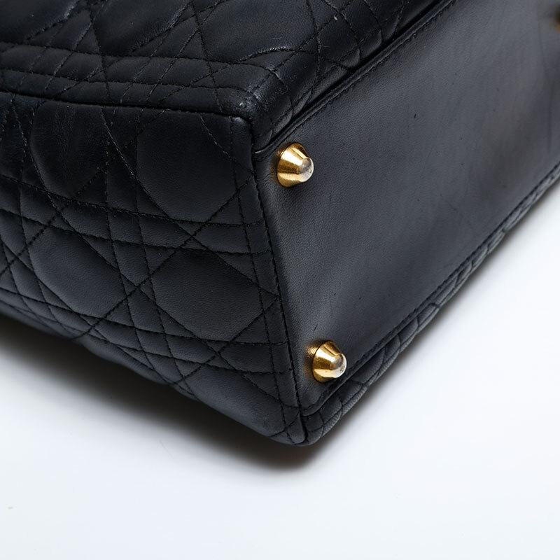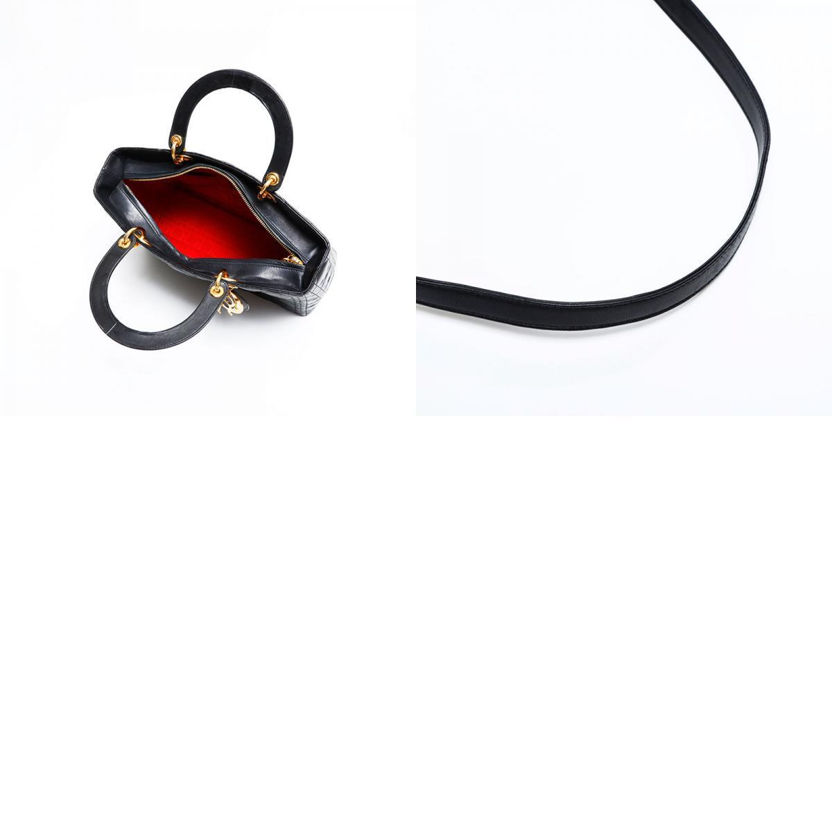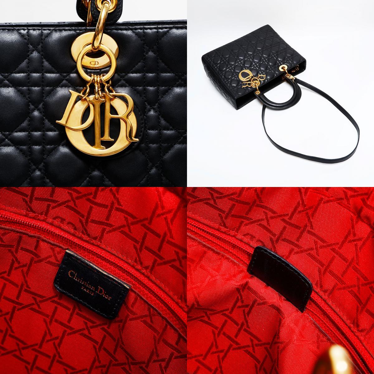 極美品 Christian Dior レディ ディオール ラージ レザー ハンドバッグ ブラック