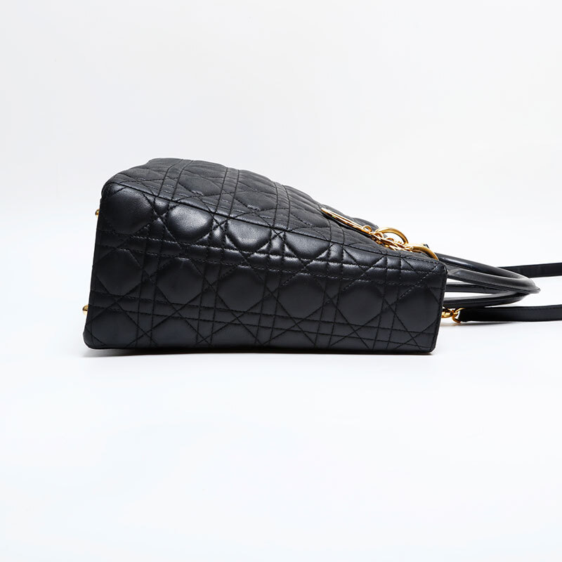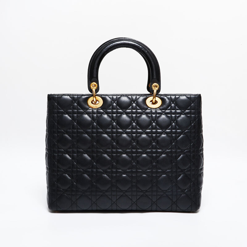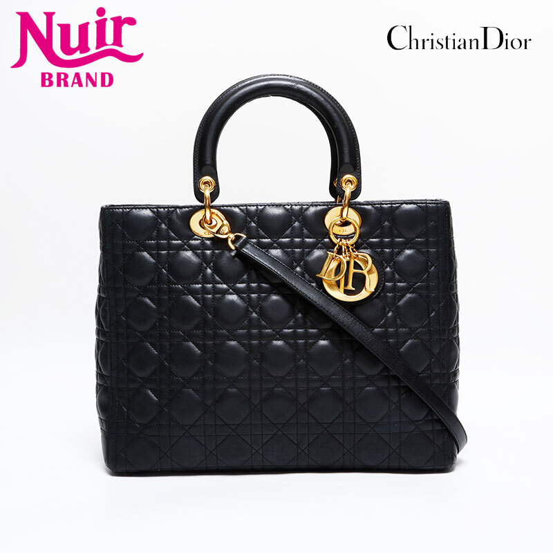クリスチャンディオール Christian Dior ハンドバッグ レディ ディオール ラージ レザー ブラック