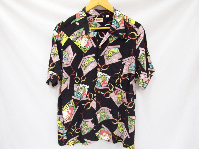 SUN SURF Hwaiian Shirt KABUKI MAKE UP SS38036-19SS サンサーフ ブラック 歌舞伎 東洋 アロハシャツ Sサイズ 中古品 ◆101133 | |||||||||