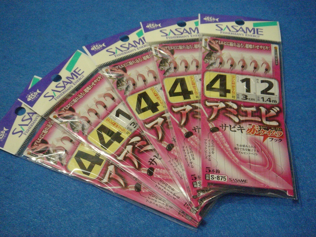 「ささめ アミエビ(赤ケイムラ)サビキ 4号」の5枚セットです。
