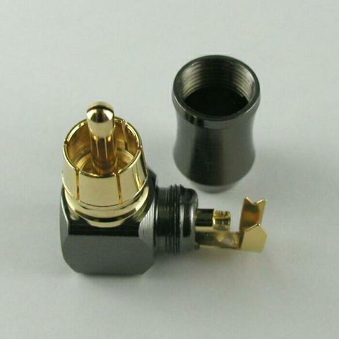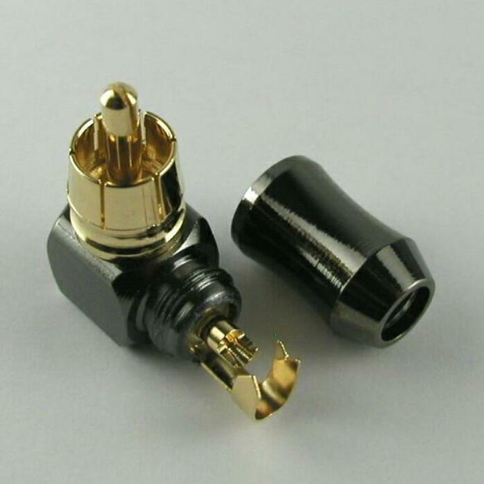 ★RCAプラグ ハンダ式 自作用 金メッキ L型 ガンブラック 2個セット【送料無料】