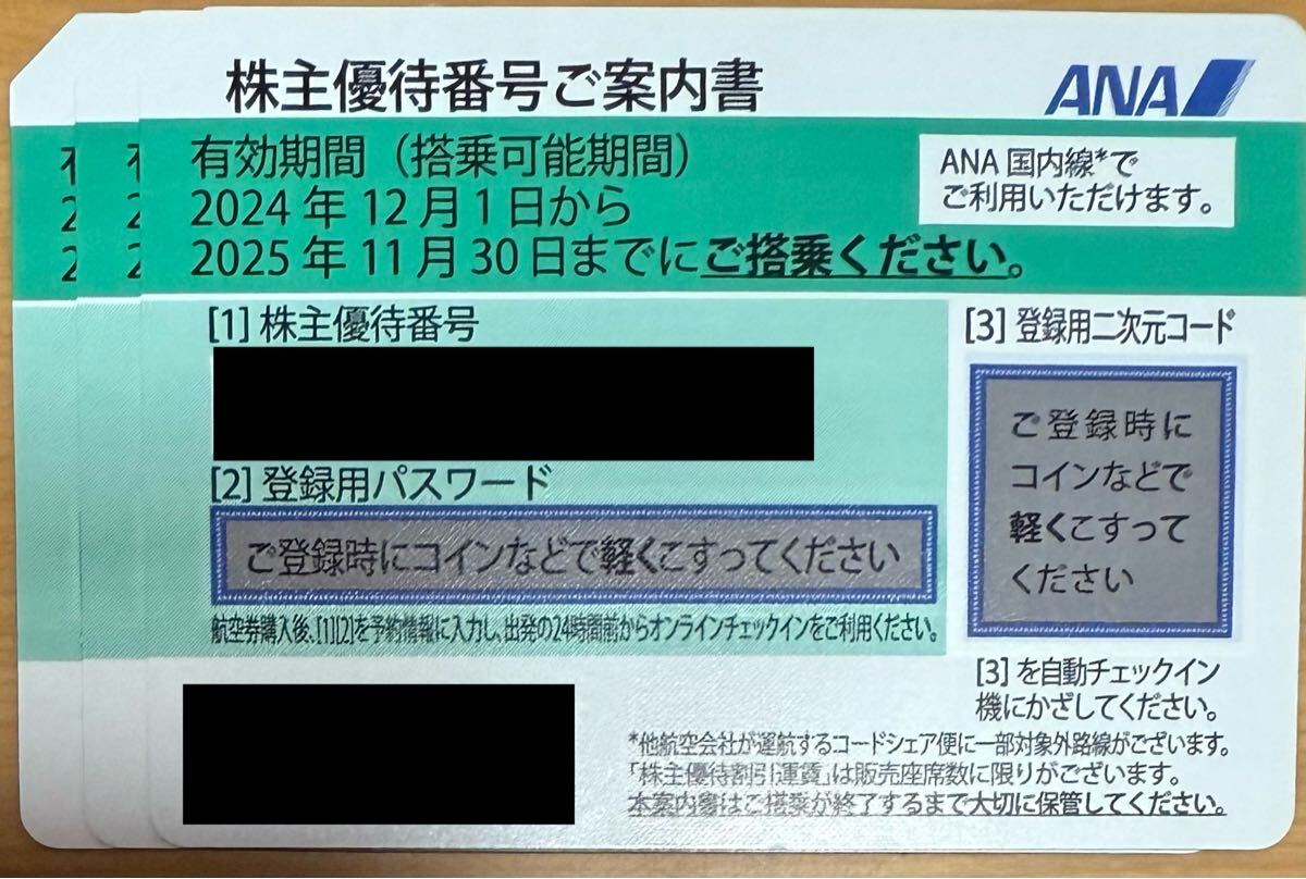 ANA株主優待券が5枚。1枚の価格となります。パスワードを通知させていただきますので、よろしくお願い致します。