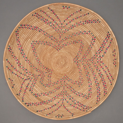 ブルキナファソで丁寧に編まれた平らな皿型のカゴ。