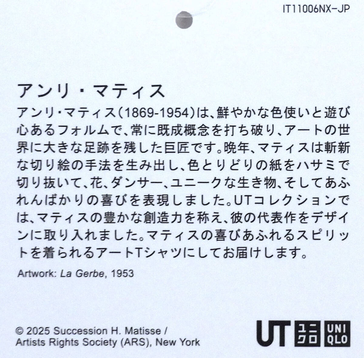 ユニクロ UNIQLO アンリ・マティス UT 半袖 メンズ Mサイズ ブルー【新品未使用】