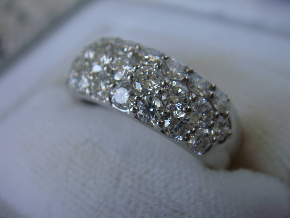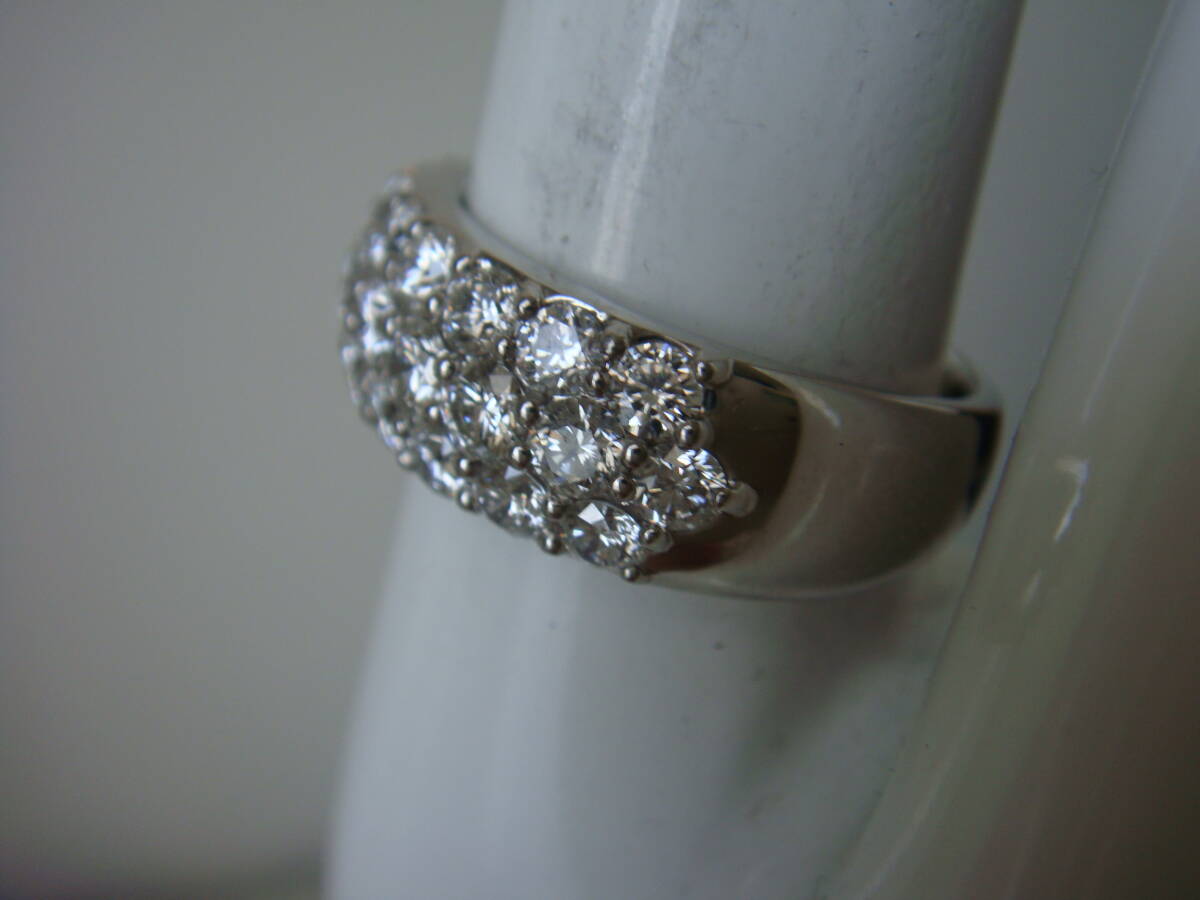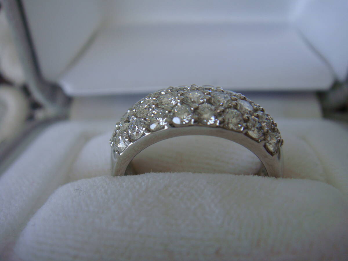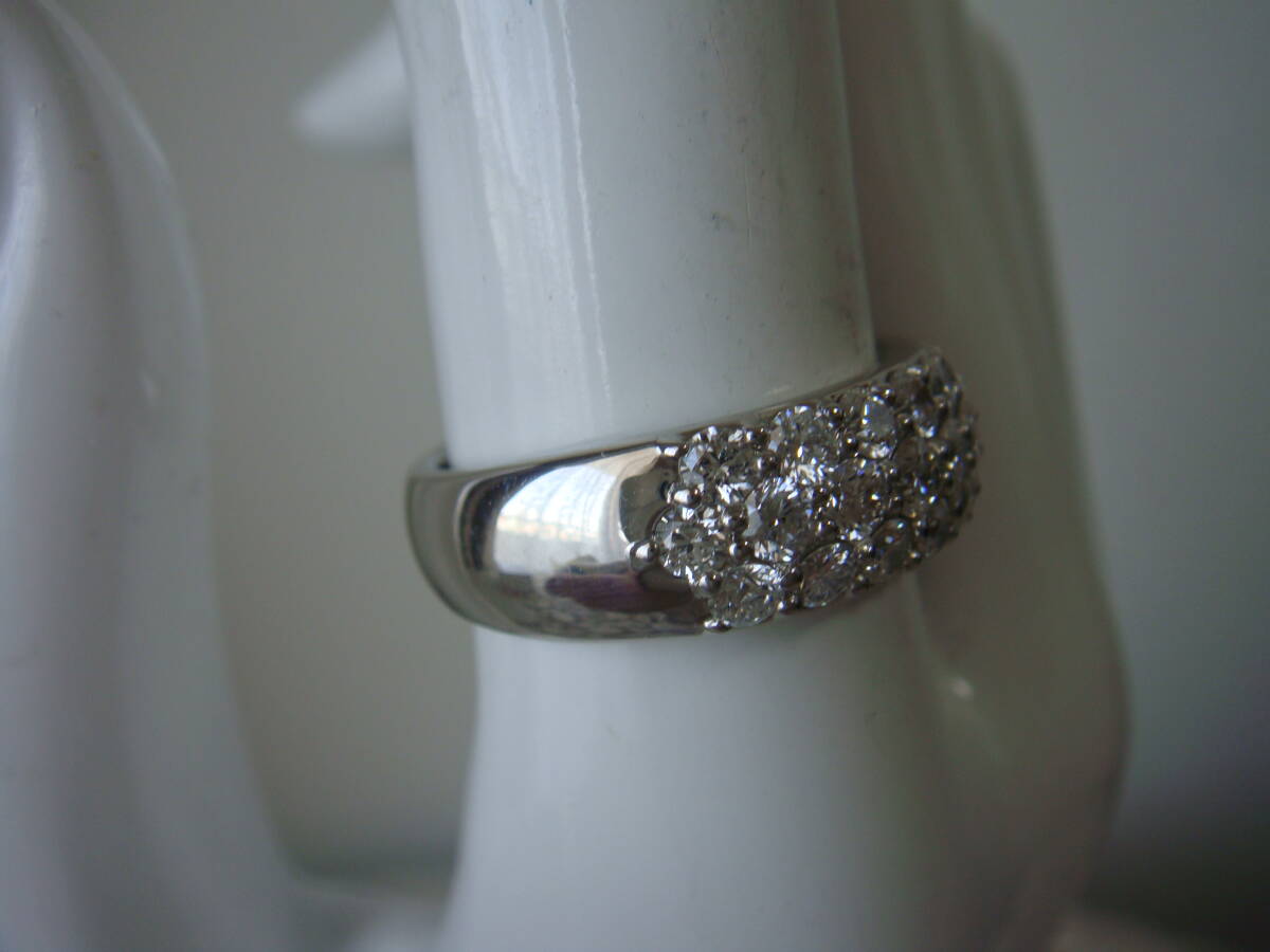 ハーフエタニティーの幅広です。ダイヤモンドは1,5カラットです。重さは約9,2gです。