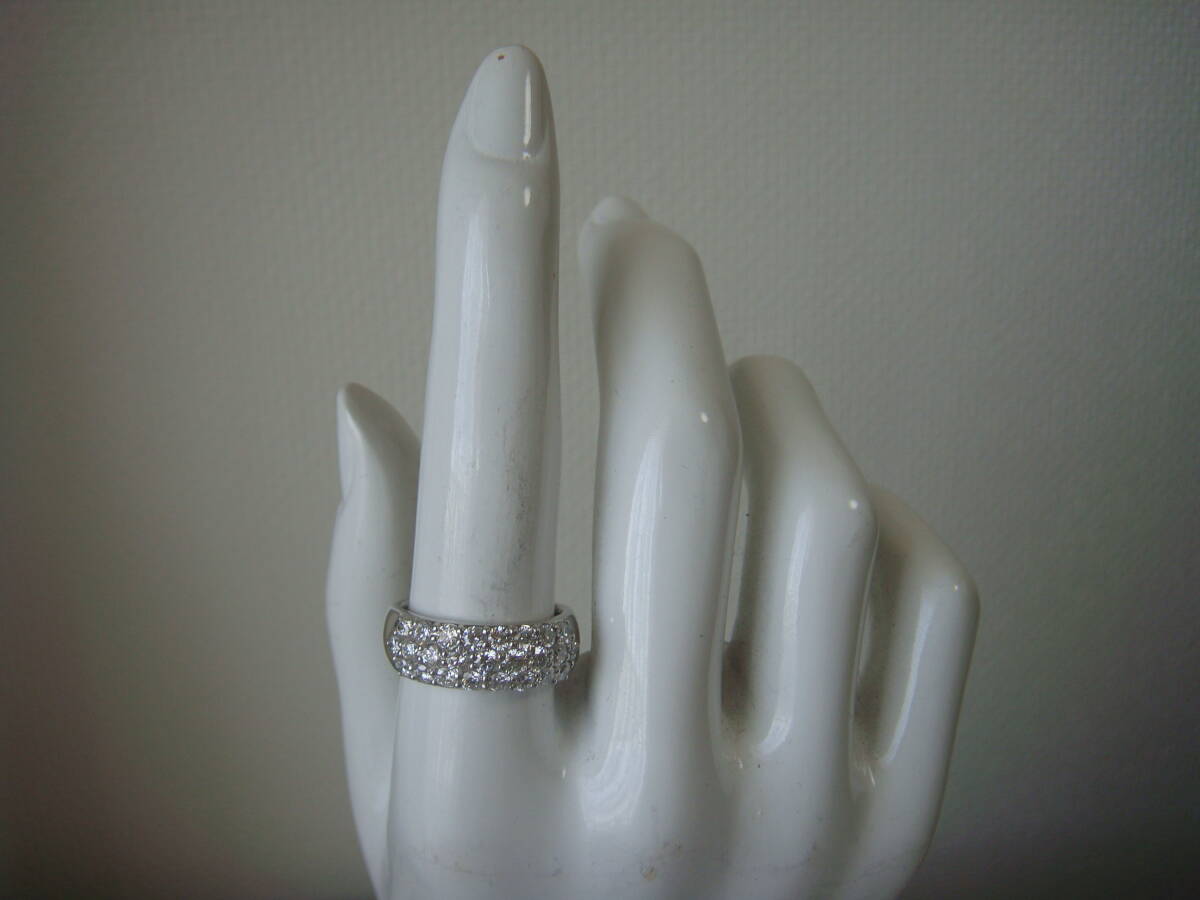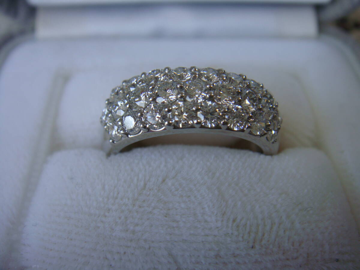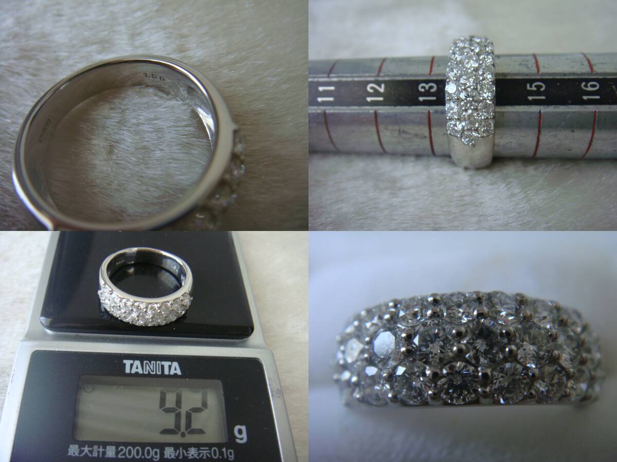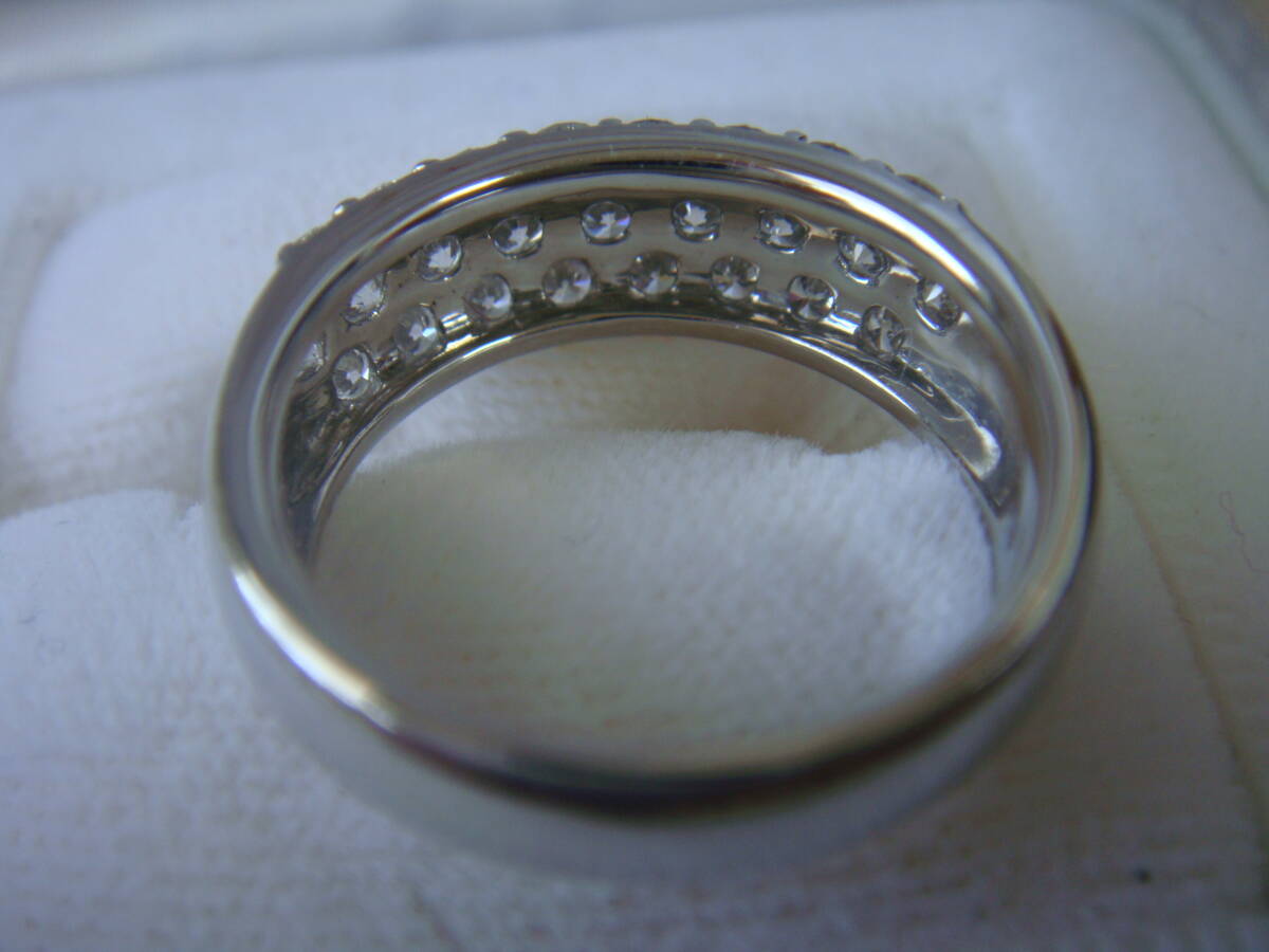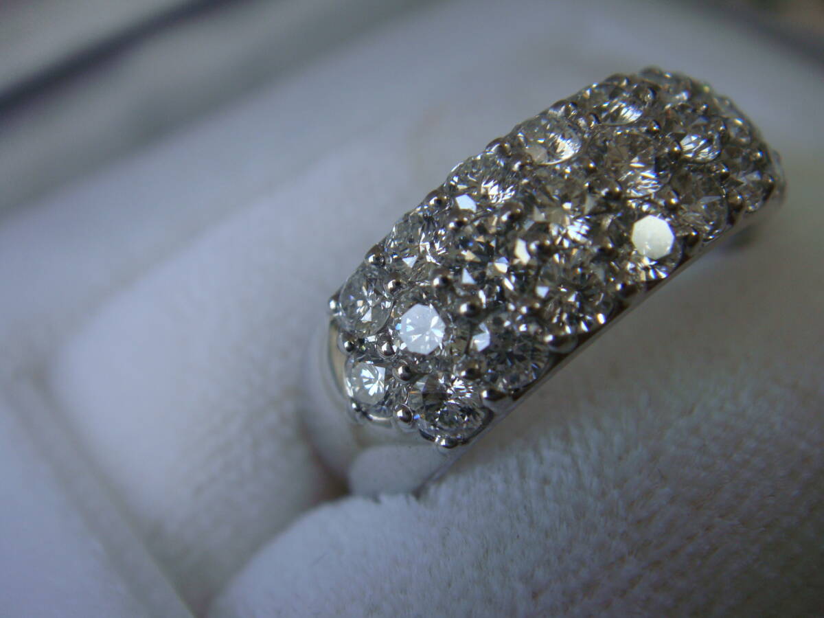 ハーフエタニティーの幅広です。ダイヤモンドは1,5カラットです。重さは約9,2gです。