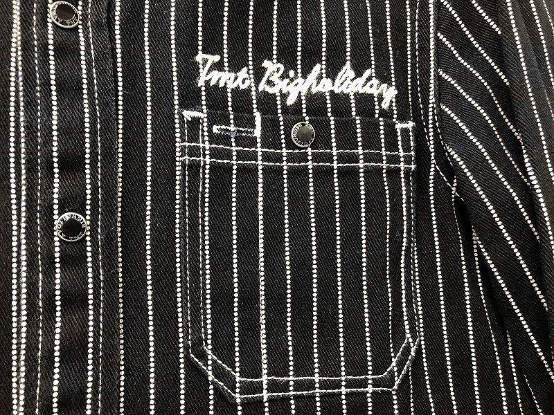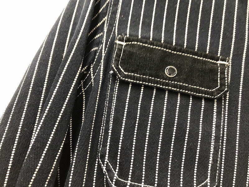 ティーエムティー TMT 【VANSON】シャツジャケット 黒系・ストライプ柄