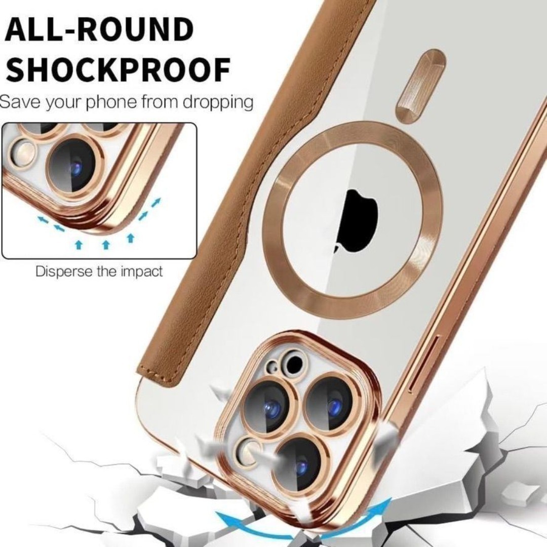 MagSafe対応/背面クリア仕様/高級レザー調TPU/カード収納付き/カメラ保護カバー/付き/手帳型デザイン