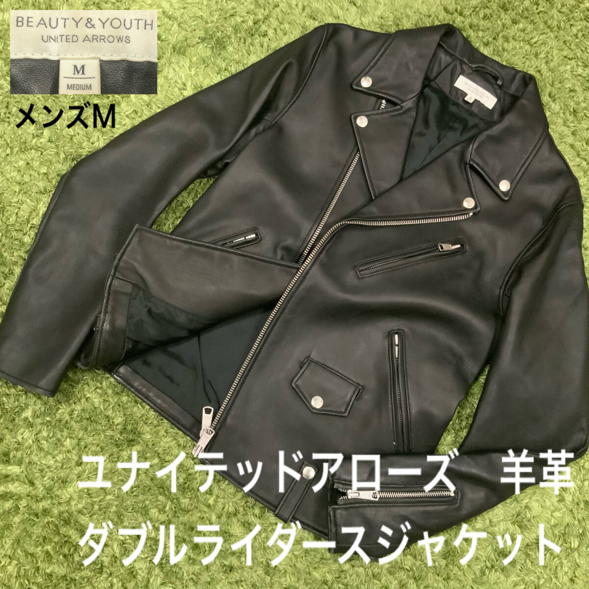 本革 羊革 UNITED ARROWS ユナイテッドアローズ ダブルライダースジャケット レザージャケット メンズM ビューティーアンドユース ブラック