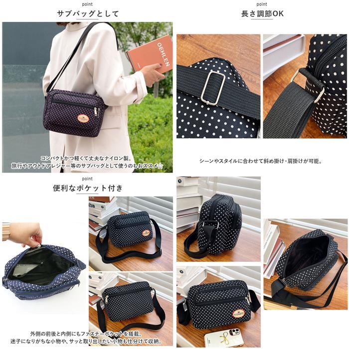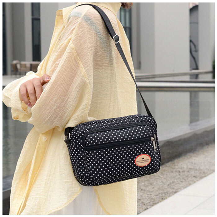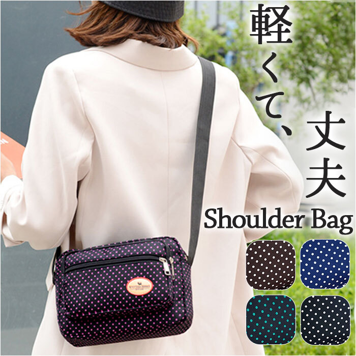 商品説明 | ・・ワンマイルのお出かけやサブバッグにおススメ♪ドット柄のショルダーバッグが新発売! ・【コーデのアクセントに】 ・ドット柄が特徴的なアイテム!可愛いデザインでカジュアルコーデのアクセントにも♪ ・【ミニマルに】 ・スマホや二つ折り財布、手帳など日常のお出かけに必要な小物をミニマルに収納!マチ幅もあり厚めのポーチの収納もOK! ・【サブバッグとして】 ・コンパクトかつ軽くて丈夫なナイロン製。旅行やアウトドアレジャー等のサブバッグとして使うのもおススメ☆ ・【長さ調節OK】 ・シーンやスタイルに合わせて斜め掛け・肩掛けが可能。 ・【便利なポケット付き】 ・外側の前後と内側にもファスナーポケットを搭載。迷子になりがちな小物や、サッと取り出したい小物も仕分けて収納。 ・【ポケット仕様】 ・メインルーム・・・ファスナーポケット×1 ・フロント・・・ファスナーポケット×2 ・背面・・・ファスナーポケット×1 |