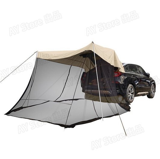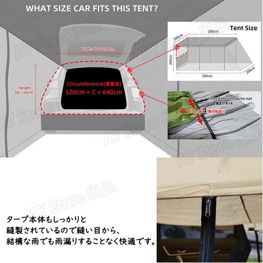カーサイドタープ 車用タープテント トランクテント 車と連結 4-8人用 カーオーニングサンシェルター 簡単設置 キャンプ 通気性 防雨防虫