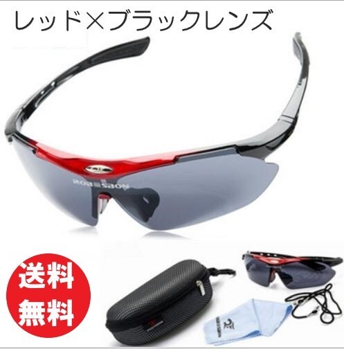 送料コミコミ☆収納ケース付 スポーツサングラス 4点セット レッド×ブラックレンズ 紫外線カット サングラス メンズ ランニング