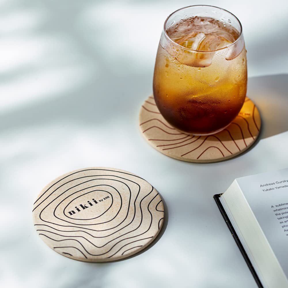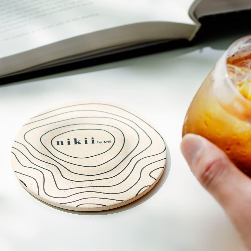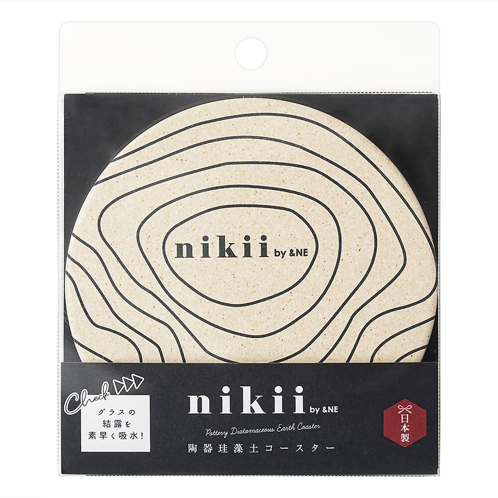 アンドエヌイー(&NE) 陶器珪藻土コースター nikii ブラック 1枚入 直径9.7cm×厚さ0.6cm 吸水コースター 日本製 美濃焼 珪