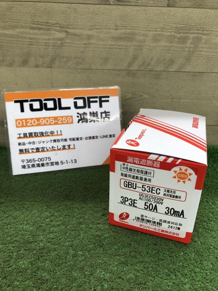 テンパール ■商品名 漏電遮断器 ■型番 GBU-53EC 50A |