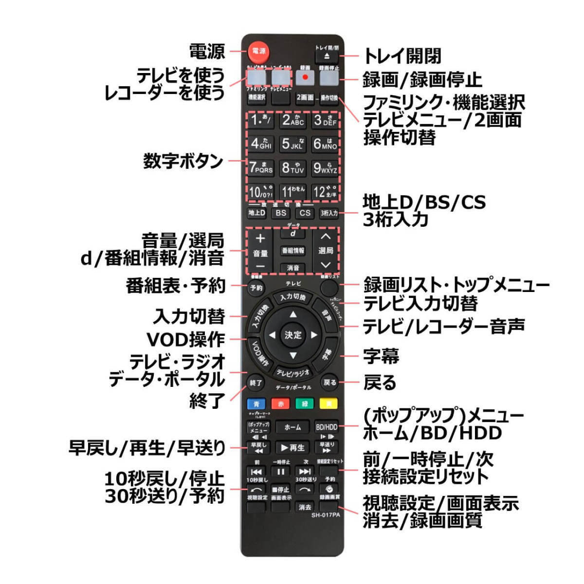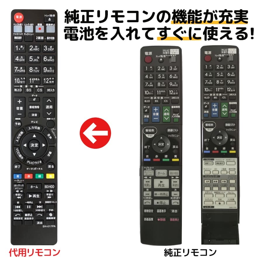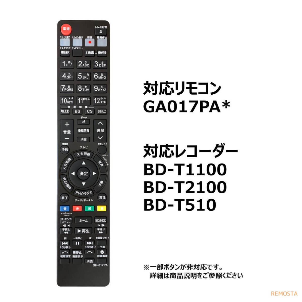 互換品 シャープ ブルーレイ GB017PA リモコン BD-T1100 BD-T2100 BD-T510 SHARP AQUOS レコーダー 代用リモコン REMOSTA