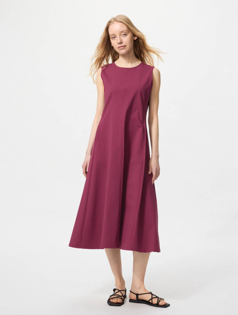 ■■3XL■■ウルトラ ストレッチ ワンピース4LユニクロUNIQLOノースリーブ赤レッド〜ピンク大きい 丈 標準フレア パーティー婚活フォーマル