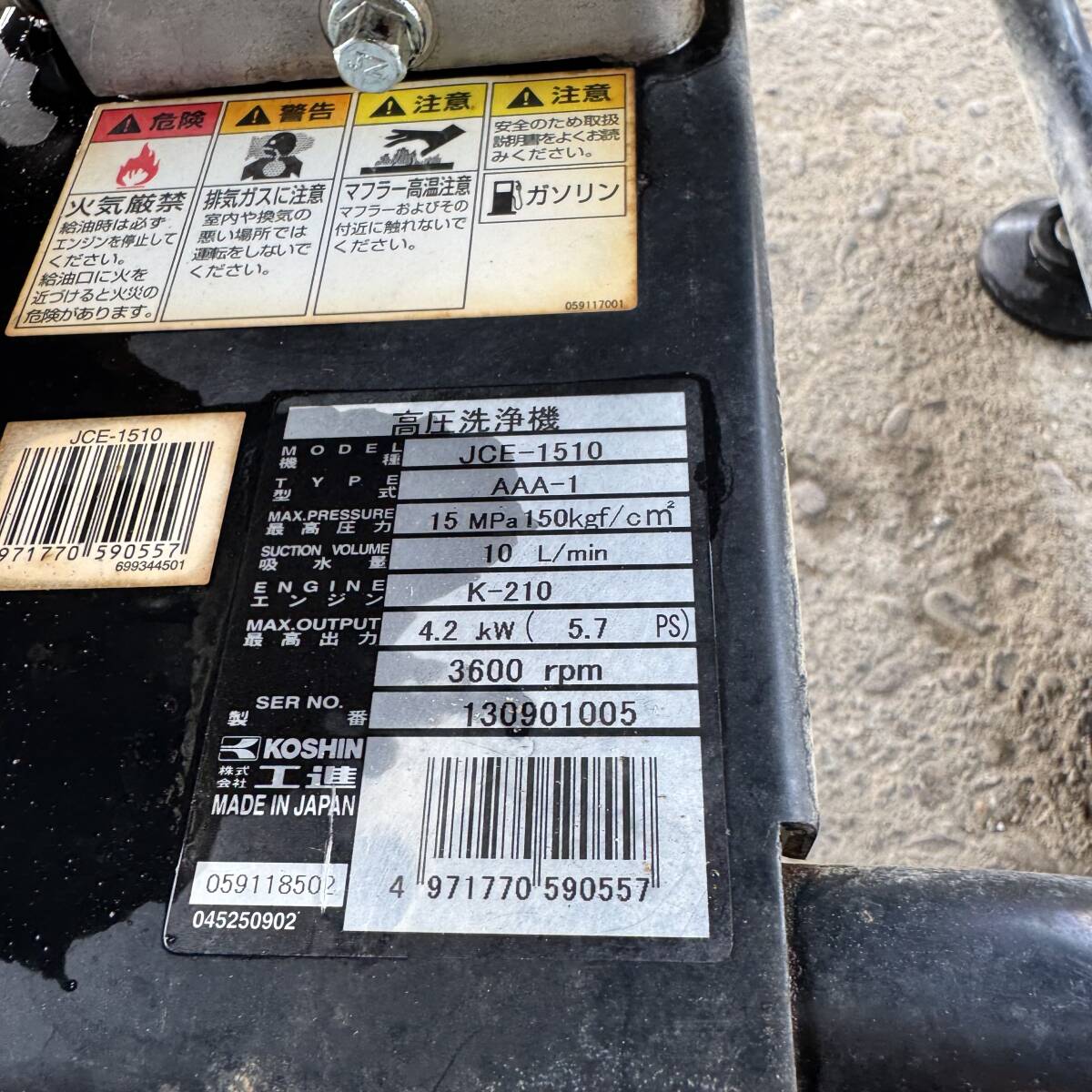 △ v 岐阜発/ 工進/ KOSHIN/ JCE-1510/ エンジン式/ 高圧洗浄機/ 本体のみ/ 実動 動画ホース等なし/ 現状品/ R7.8/29 △ |