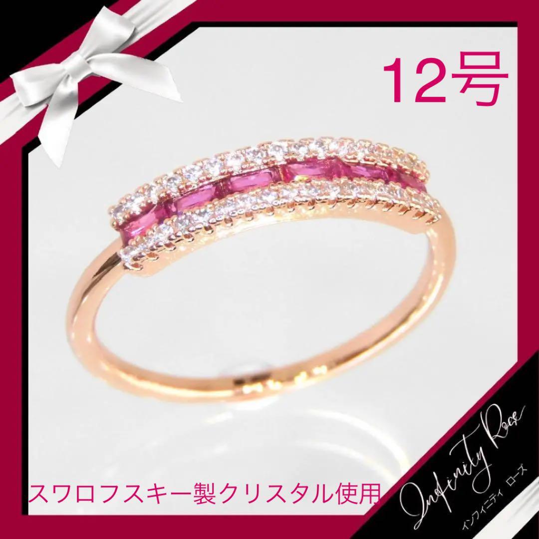 (1088)12号 フリルピンクリング スワロフスキー製クリスタル使用
