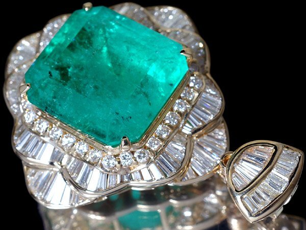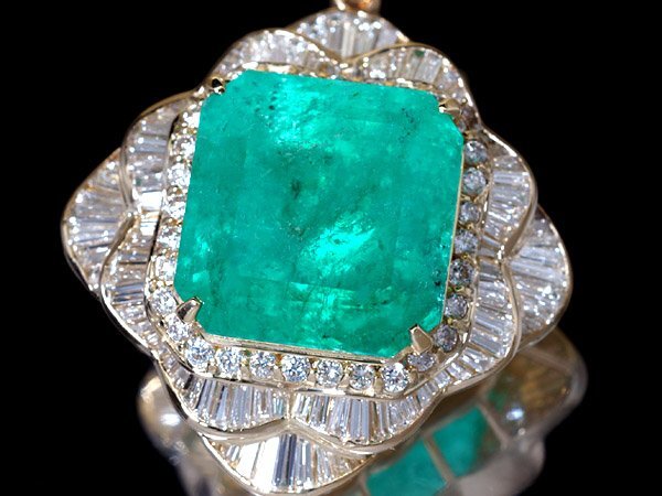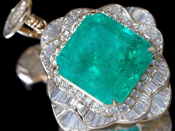 【ジュエリー極】鑑付 コロンビア産 超極上 超特大天然エメラルド36.47ct&極上ダイヤモンド9.156ct 極上K18YGヘッド h7751【送料無料】