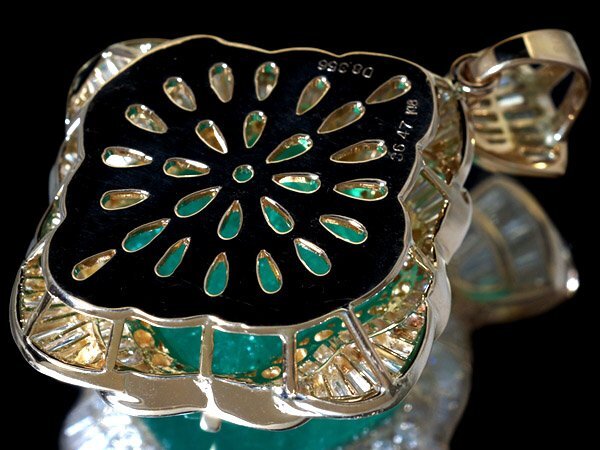 極みの逸品!超極上品!超特大サイズのコロンビア産・特大天然エメラルド36.47ct&極上天然ダイヤモンド総計9.156ctを超贅沢にセッティングした、超極上K18YGペンダントヘッドを超激安価格で超特別大放出とさせて頂きます!