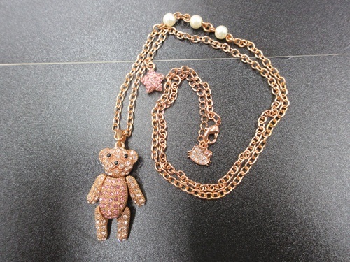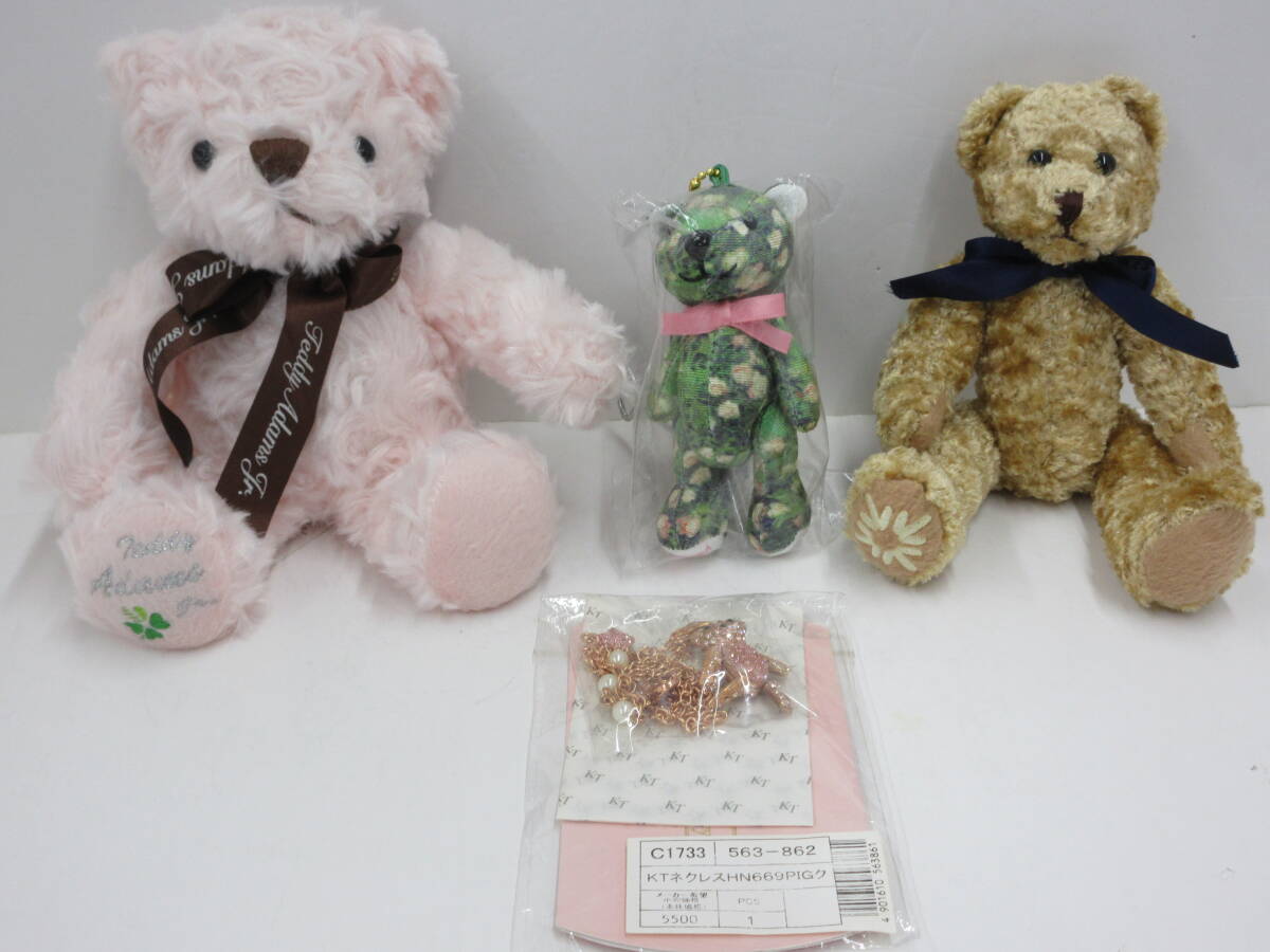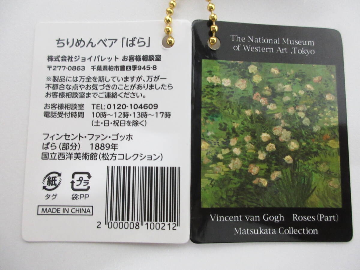 [す05] テディベア、ハロッズ白専用、ネックレス、ぬいぐるみ、ちりめんベア「ばら」ゴッホバラ柄。