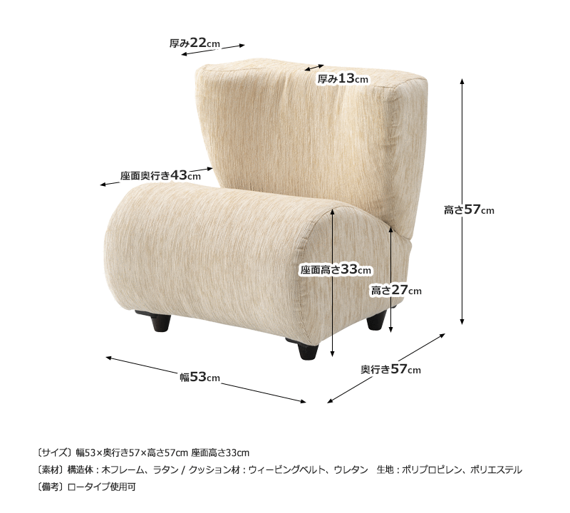 ロータイプ使用時は、座面と高さが4~5cm下がります。