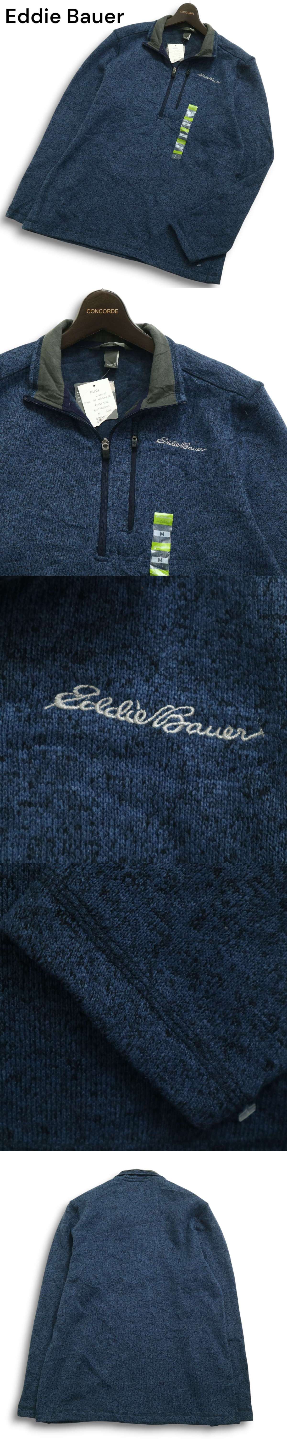 【新品 未使用】 Eddie Bauer エディーバウアー 秋冬 裏フリース ハーフジップ トレーナー Sz.M メンズ 紺 アウトドア