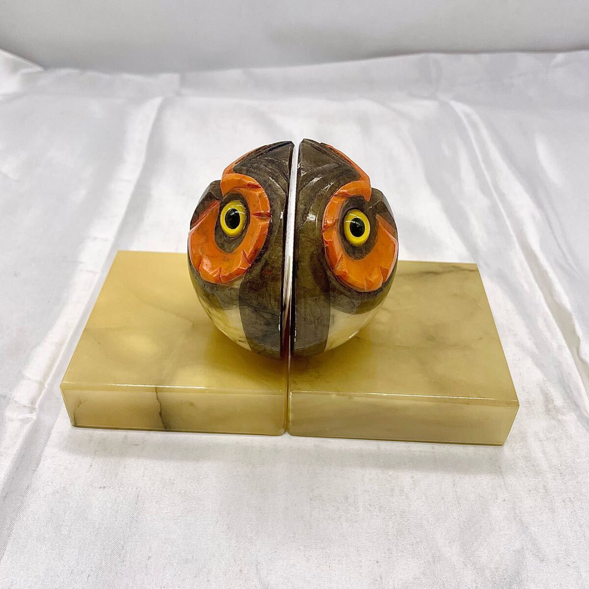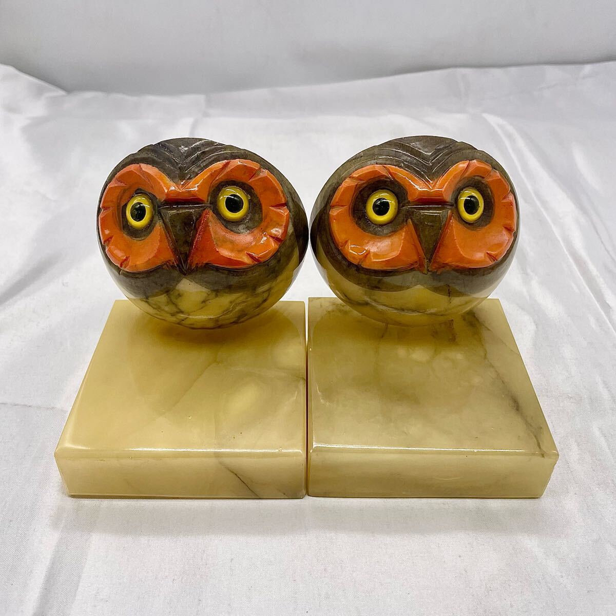 イタリア製 アラバスター フクロウ ブックエンド ペア