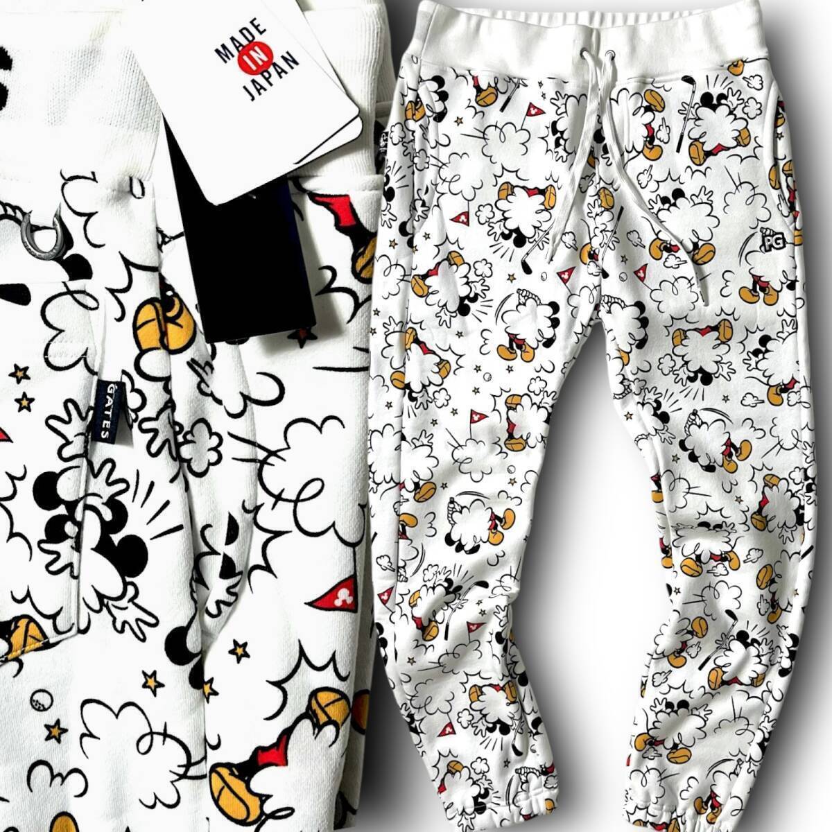 タイトル 新品 PEARLY GATES パーリーゲイツ 定価3万 T/C 裏毛起毛 スウェットパンツ Made in japan 日本製 MICKEY SERIES MICKEY MOUSE SERIES ミッキーシリーズ ミッキーマウスコラボ 防風 保温 総柄 裏起毛 裏地フリース 総柄 ロゴ刺繍 ストレッチ ジョガーパンツ ゴルフウェア 4 M 相当 メンズ GOLF スポーツ レジャー 普段使い タウンユース カジュアル 秋冬 AW FW ホワイト系