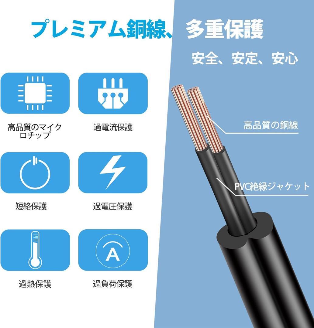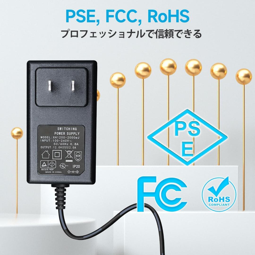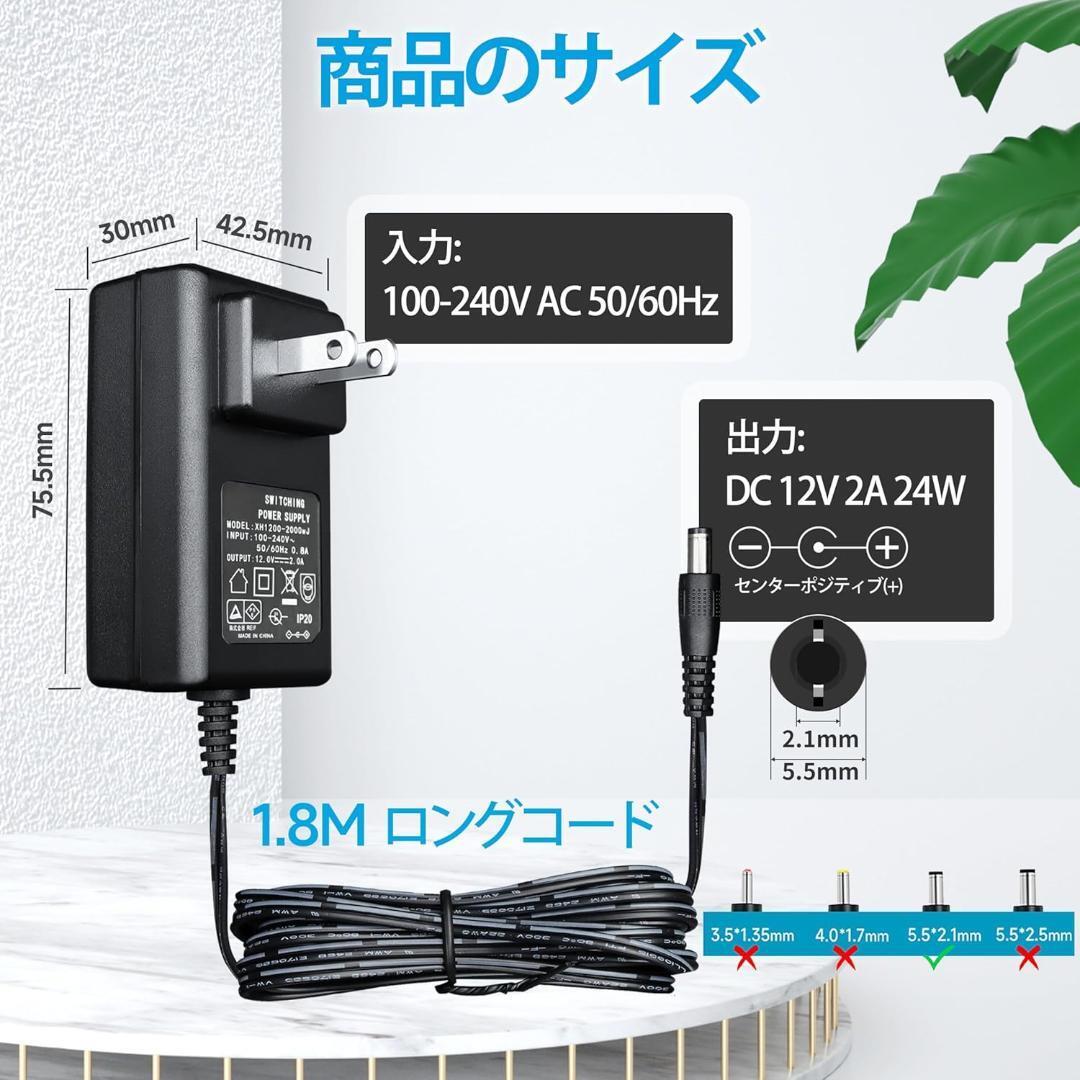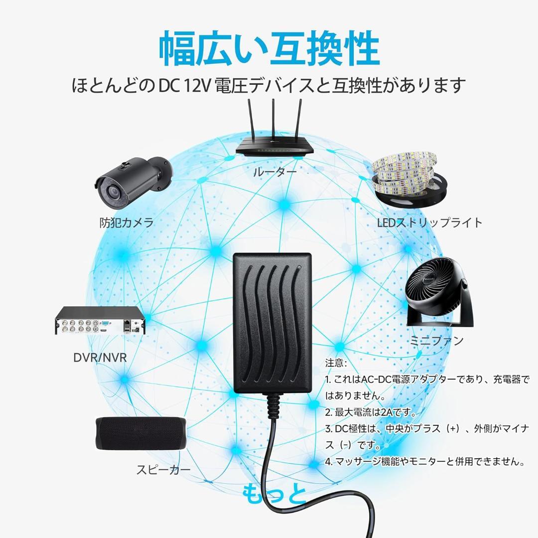 2A / 2000mA(0.1A / 100mA〜2A / 2000mA)の出力負荷、12V出力の電子機器と互換性あり。