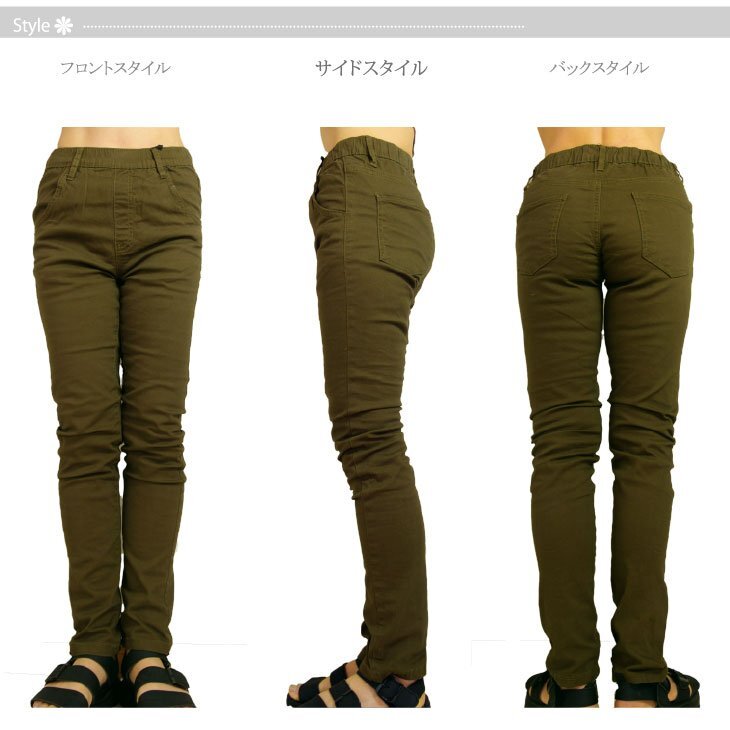 M カーキ/スキニーパンツ ツイル レディース ウエスト総ゴム ストレッチ 美脚/新品