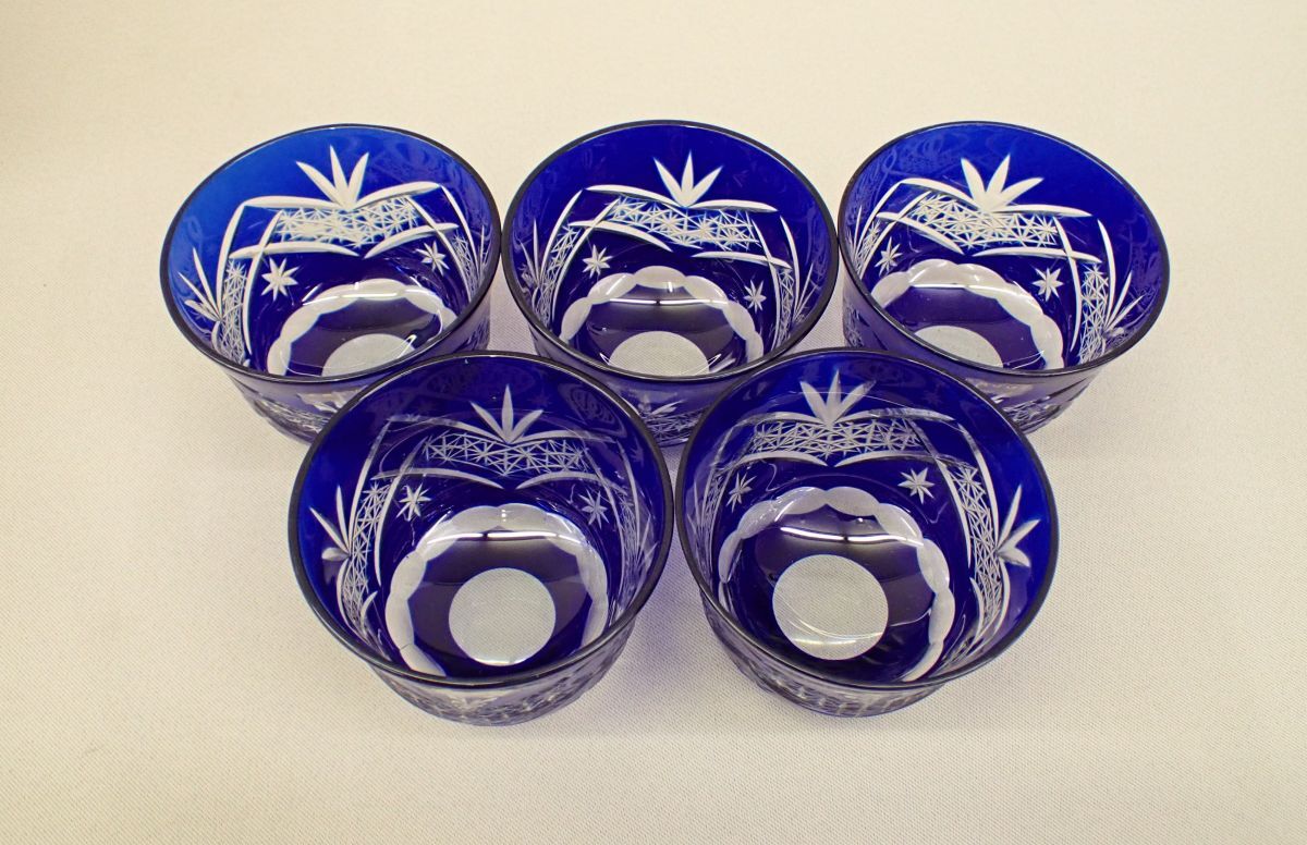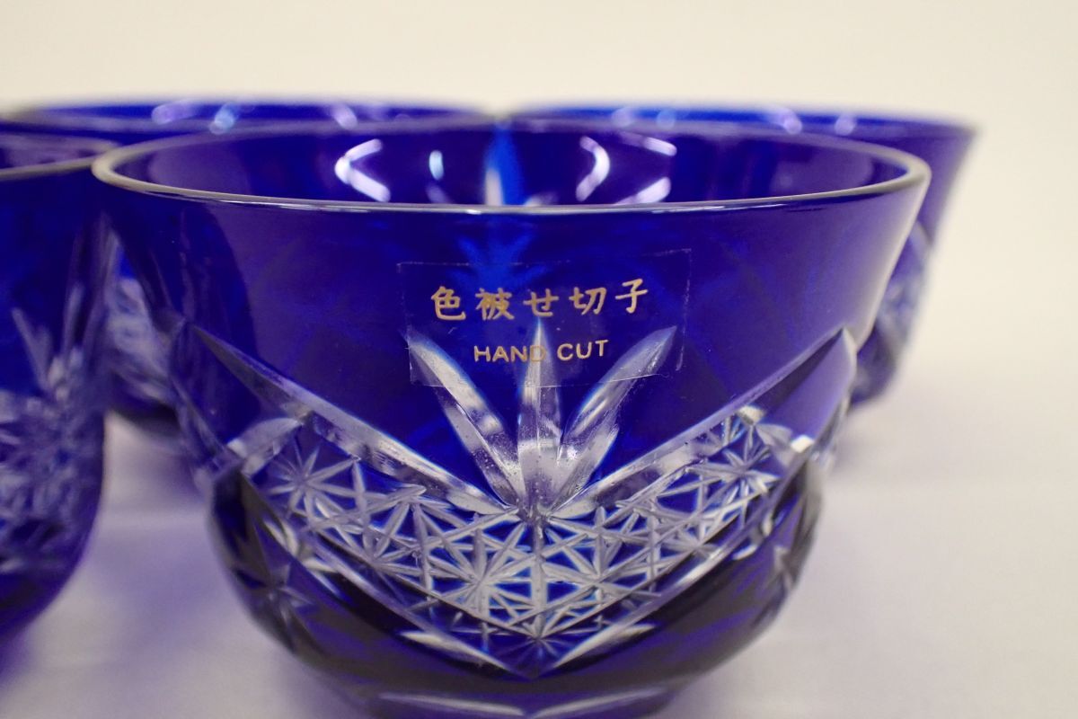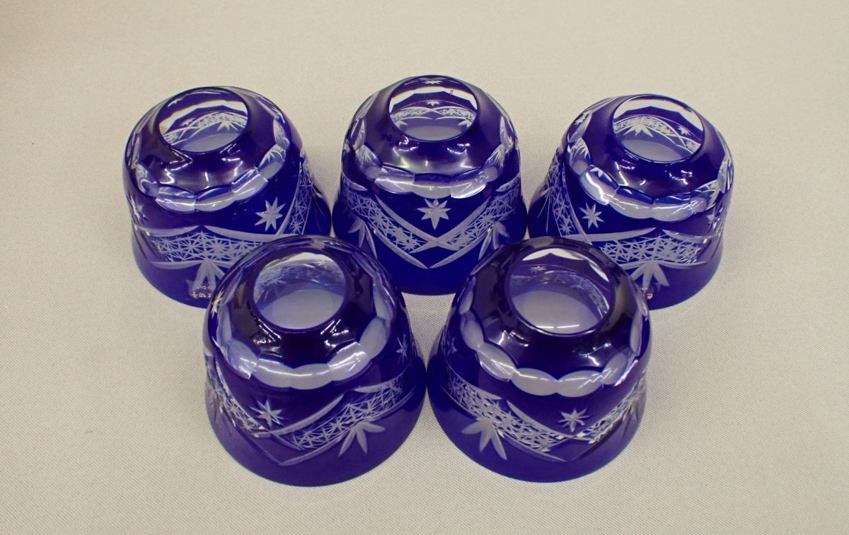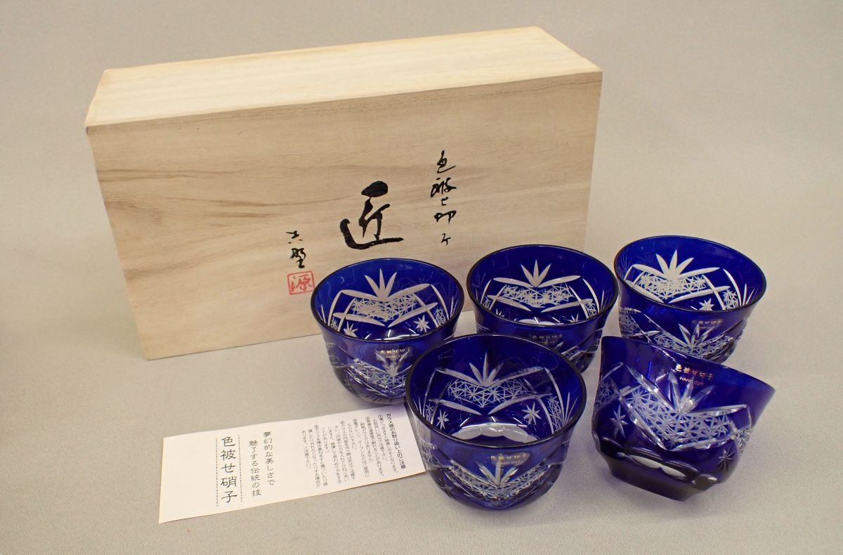 ▲06 未使用 色被せ硝子 匠 志聖 ぐい呑み 5客▲箱付/冷茶グラス/酒器/お猪口/切子/消費税0円
