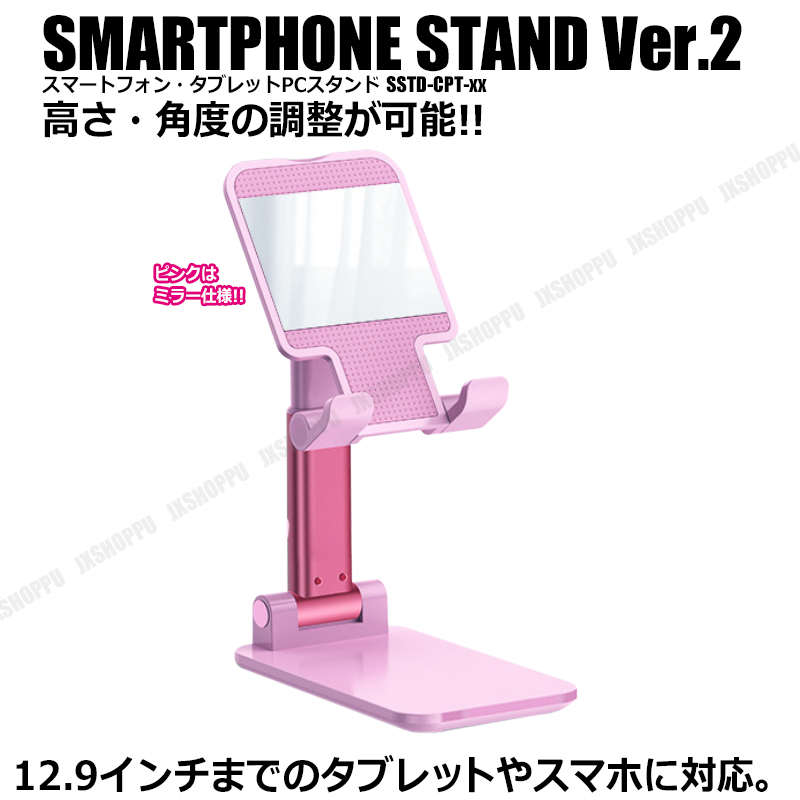 送料無料! 最新 スマホスタンド 【改】 超重量級 安定性向上 [ピンク] ~12.9インチのタブレット対応 伸縮 折りたたみ 角度 高さ 調節