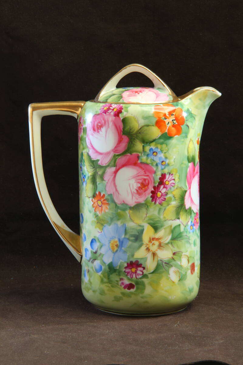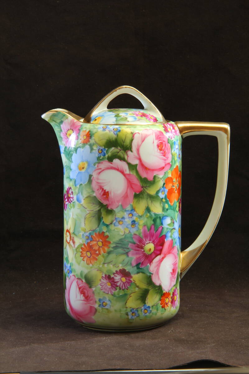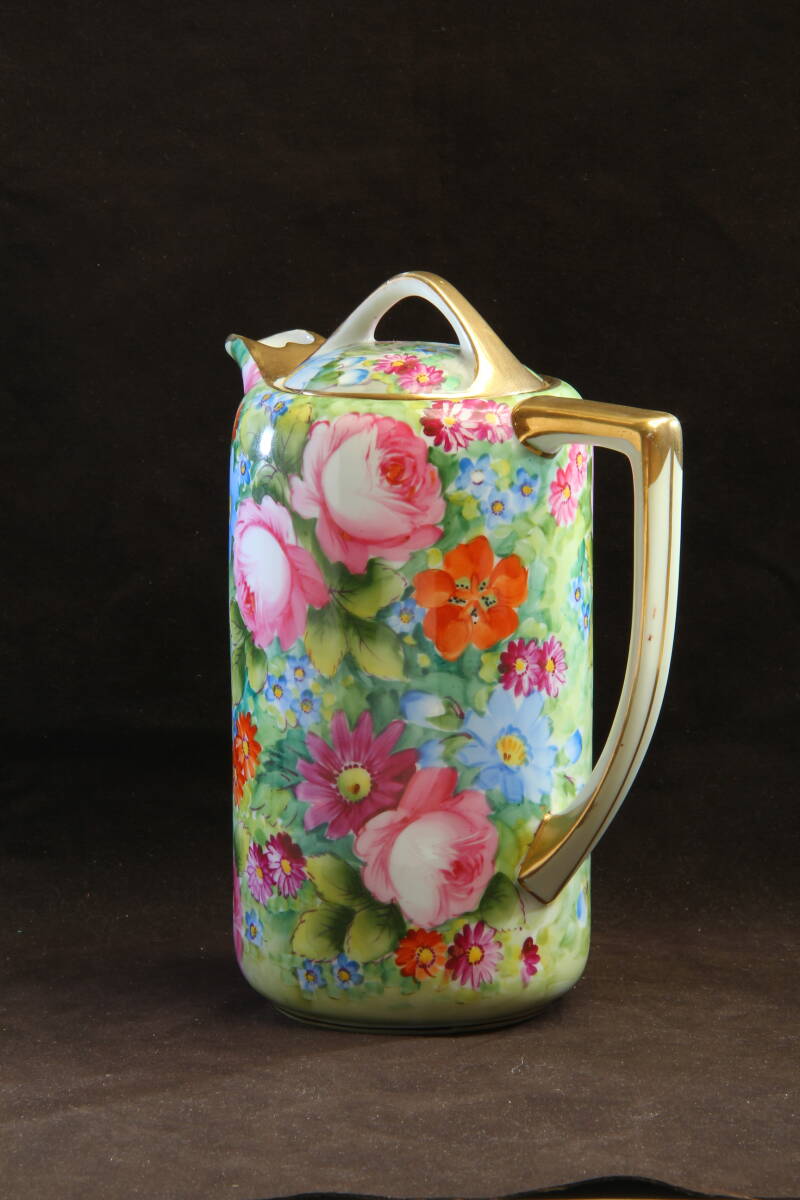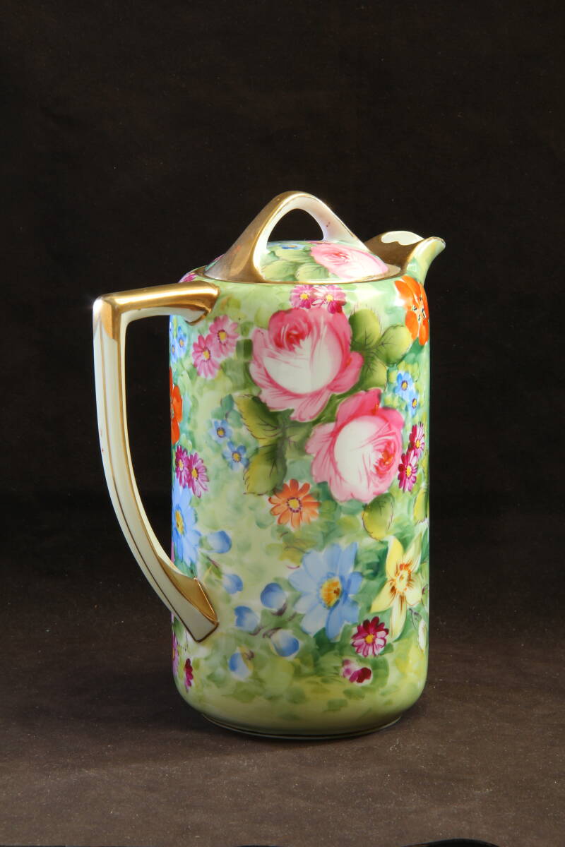 金彩縁飾り と薔薇の模様が美しいチョコレートポット