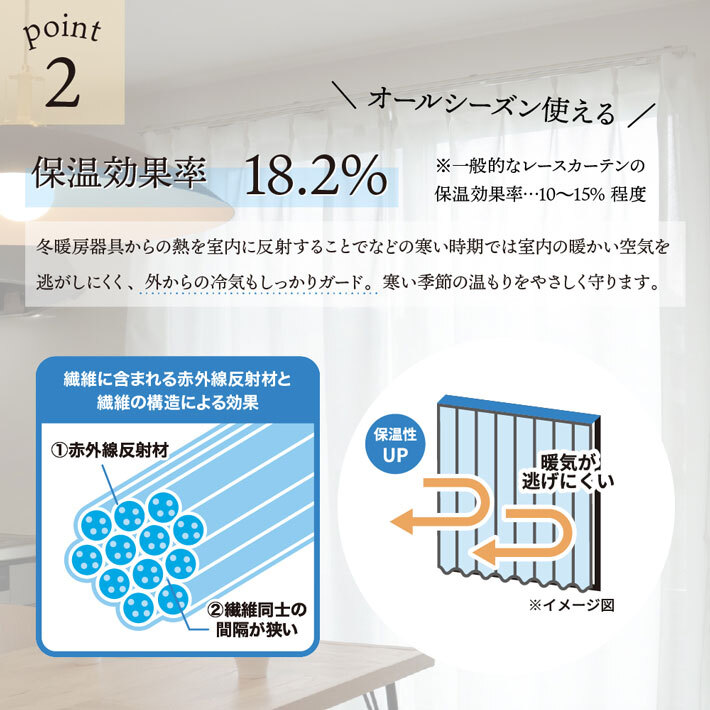 ■保温効果率18.2%:冬は暖気を逃しにくく、冷気もガード。室内の温もりを優しく守ります。
