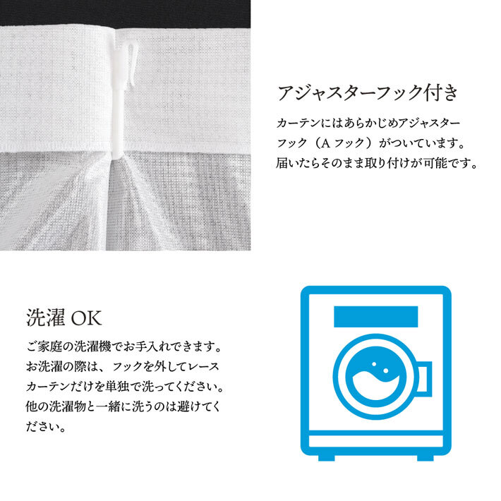 ■カーテンにはあらかじめアジャスターフックが付いています。