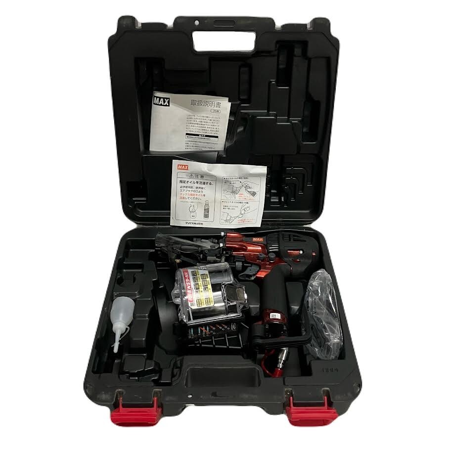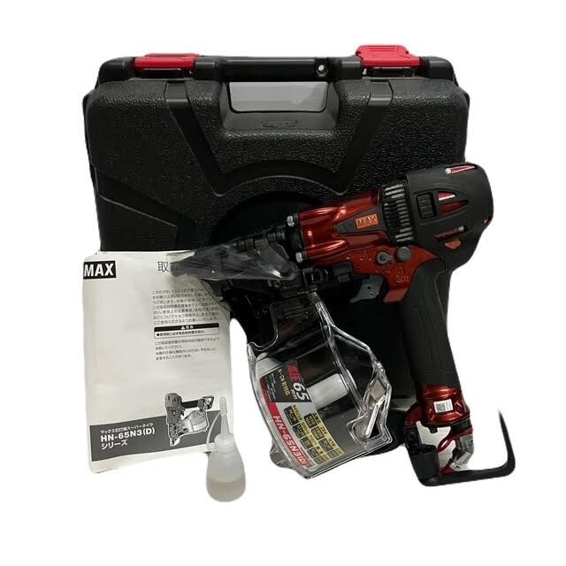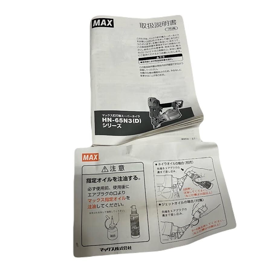 仙57【良品】MAX マックス 釘打機スーパーネイラ 高圧コイルネイラ 本体 HN-65N3(D)-R + 保護メガネ + オイル + 取説 + ケース セット