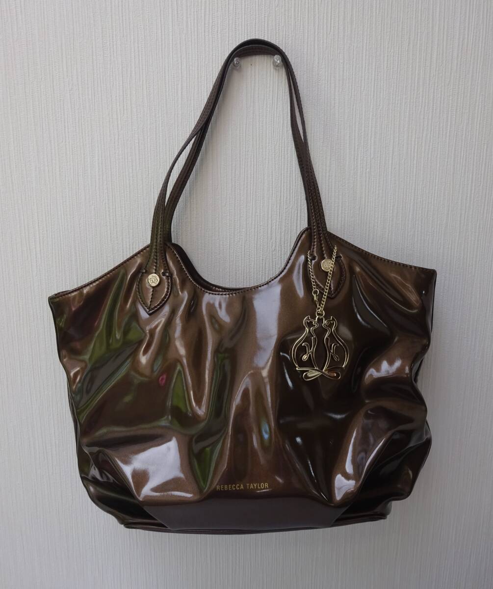 レベッカテイラー ハンドバッグ エナメル ブラウン ラメ入り