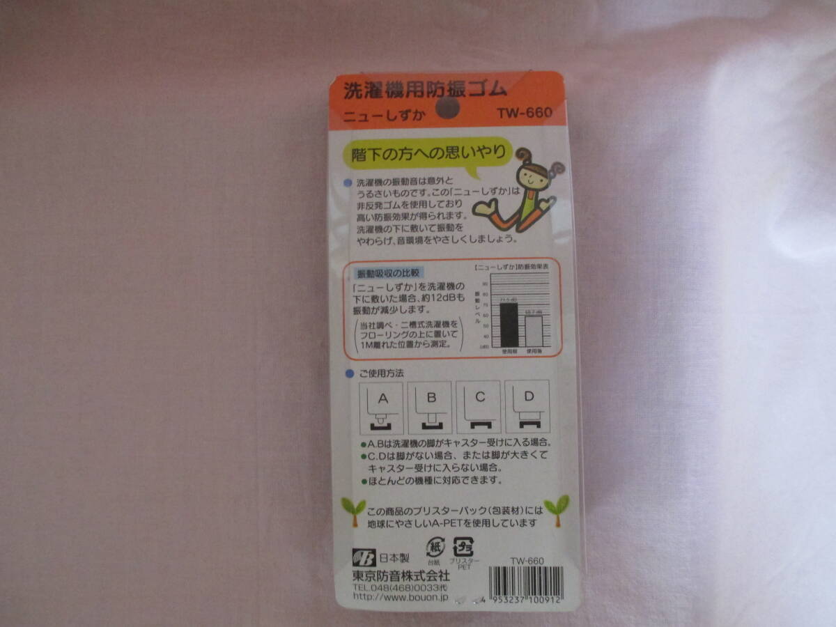 未開封 洗濯機用防振ゴム ニューしずか 非反発ゴム Tw-660 日本製 4個入 です