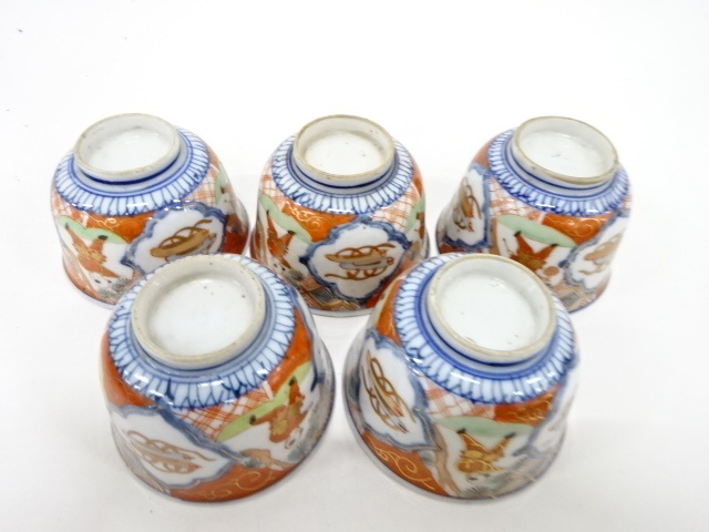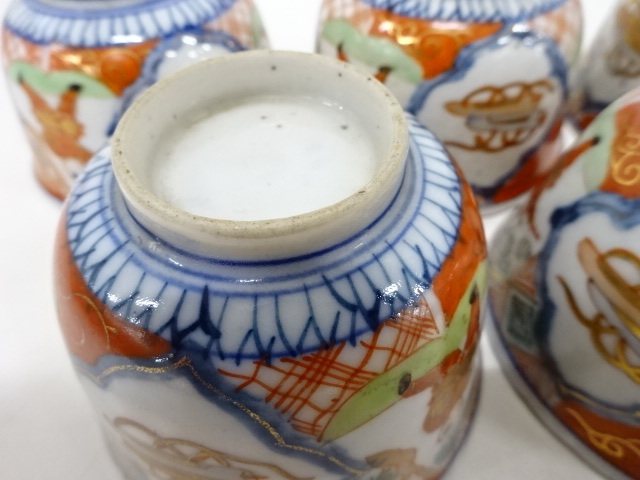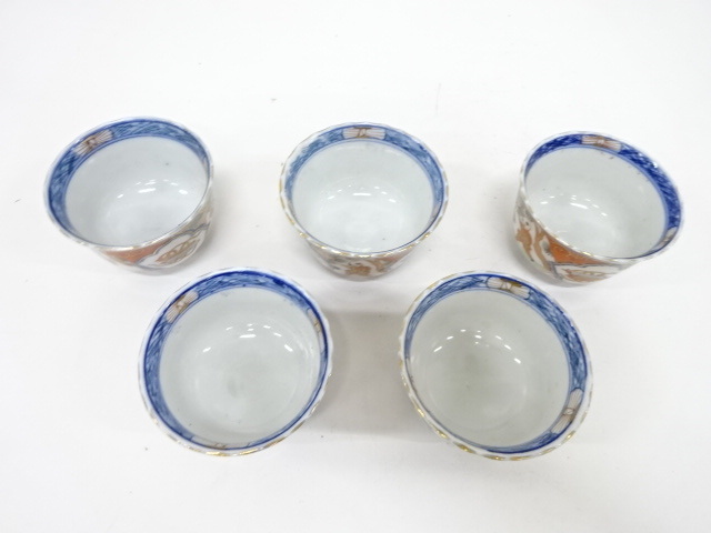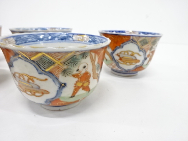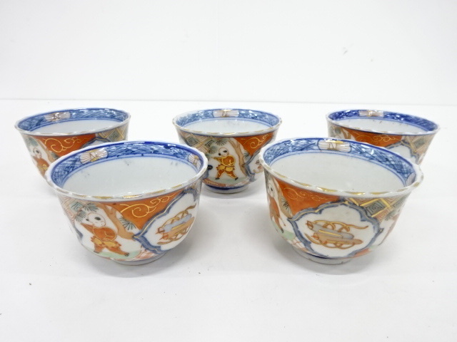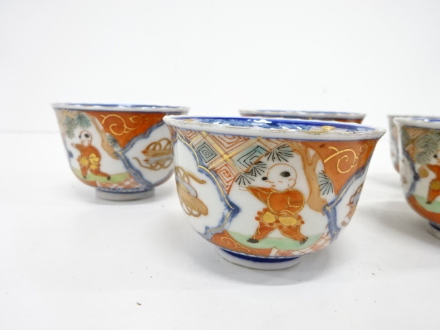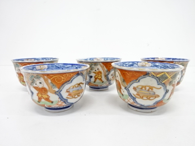 古伊万里 染付赤絵 唐子 猪口 5客揃 (II2DHP-020)
