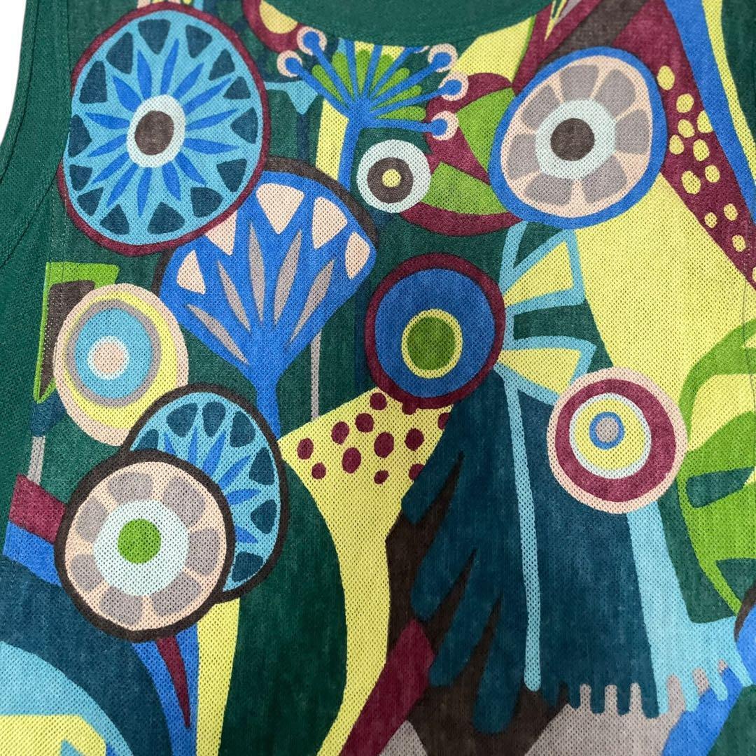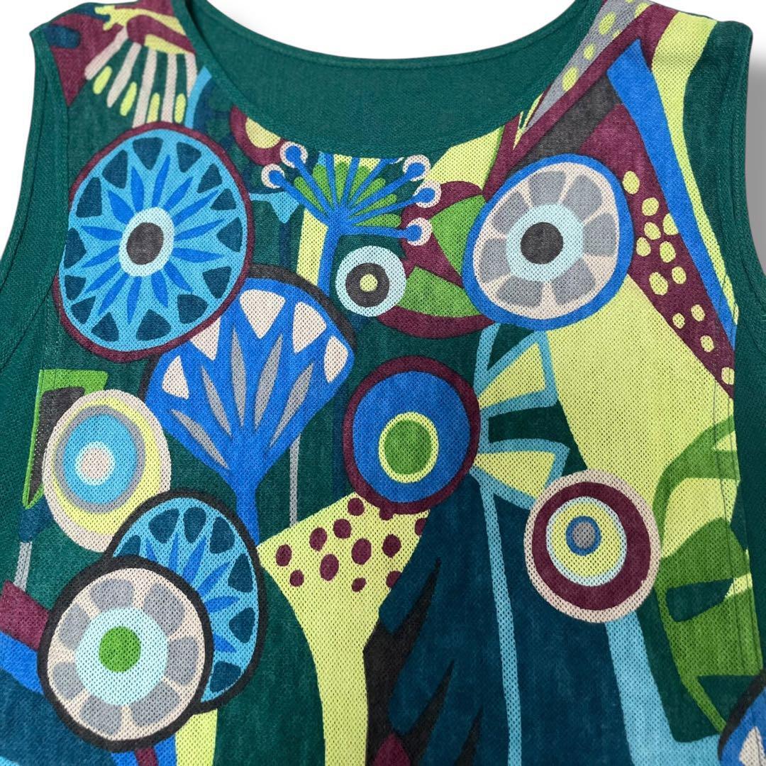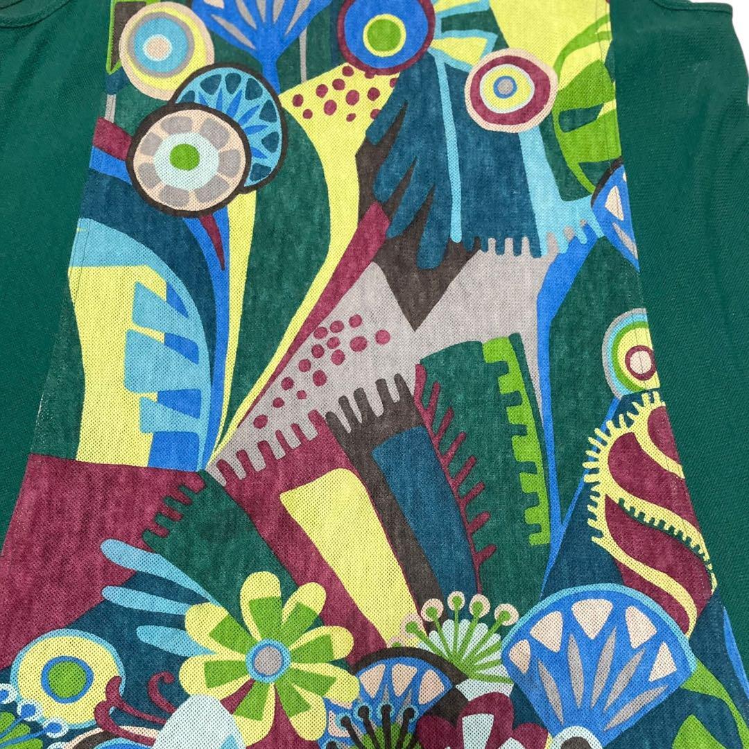 鮮やかなカラーとアートのような花柄デザインが目を惹く一枚。